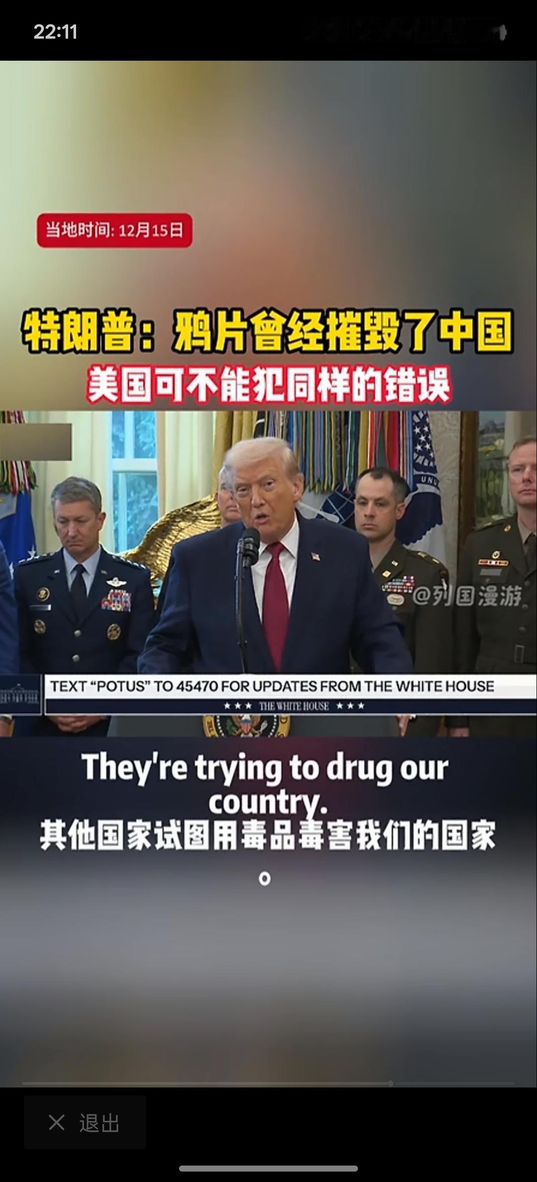 特朗普说芬太尼,就像当年中国的鸦片战争一样,侵害了中国!摧毁中国!特朗普要把芬太尼当成最大的威胁来解决!