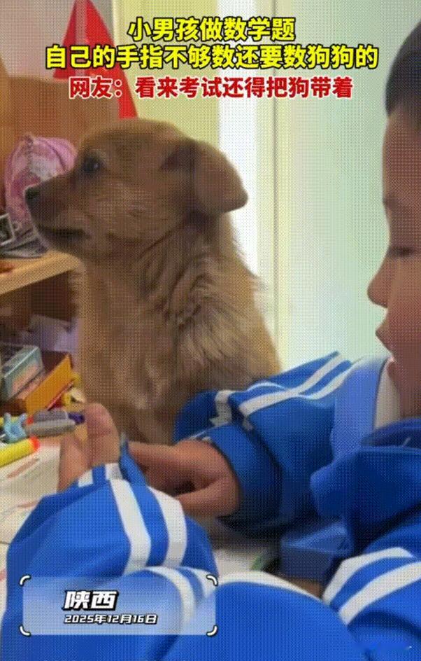 笑不活了!陕西,小男孩在家做数学题,当有一道题是10+15等于多少时?他数完自己的手指头后还不够数,直接把狗狗的手拿来凑数。把狗狗也给搞懵了,因为它祖宗十八代都是看门的,难不成到它这一代要出个状元了!网友:看来考试还得把狗带上! 一年级的小学生放学后正在家里做数学题,他刚接触还有些不熟悉,不过数数倒挺溜。当遇到两位数加两位数的加法时,也难不倒他。因为他数完自己的十根手指头后直接在数狗狗的。 这一波操作可把一旁辅导的妈妈看呆了,真不知该夸他是聪明还是笨。当它拿狗狗的爪子来凑数时,搞得狗狗很尴尬,心想:小孩哥这么简单的题目你都不会,你能不能别这样,你不嫌丢人我还嫌丢狗呢! 小孩哥可不管狗狗乐不乐意,直接用它的爪子数的可起劲了。一旁的妈妈着实要血压飙升了,不知说啥是好,让人哭笑不得。狗狗也用很迷惑的眼神瞅着小孩哥,好像要怒:够不够,够不够,不行我把牙漏出来,给你数行不? 网友调侃让他妈妈给孩子养个蜈蚣吧,那个腿多,可以方便用腿。哈哈哈真是佩服小孩哥的想象力,太丰富了,有头脑,看来年轻的脑子还是好使。 对于这件事情,大家有什么看法? 信息来源:普陀潮