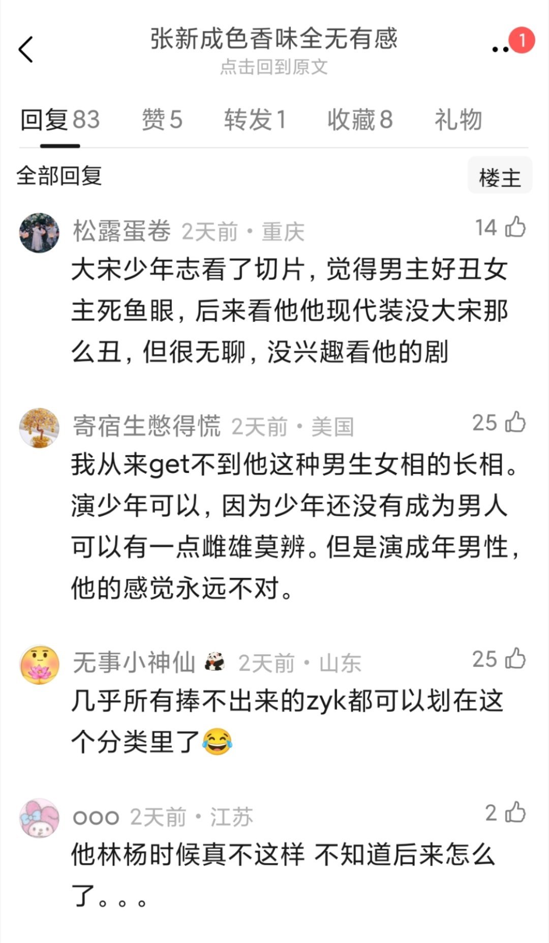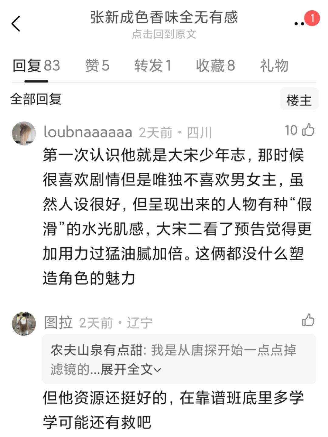 大虐,张新成被瓣人评选为【色香味全无型演员】【资 源天花板,转化率地板】网友说本来《大宋少年志》对本哥观感还蛮好的,觉得他在待爆里资质不错。 可自从他下海演了《默读》之后,感觉一切都走向崩坏了,之后再演bg都0杏张力,怎么看都很别扭的感觉。。。😅