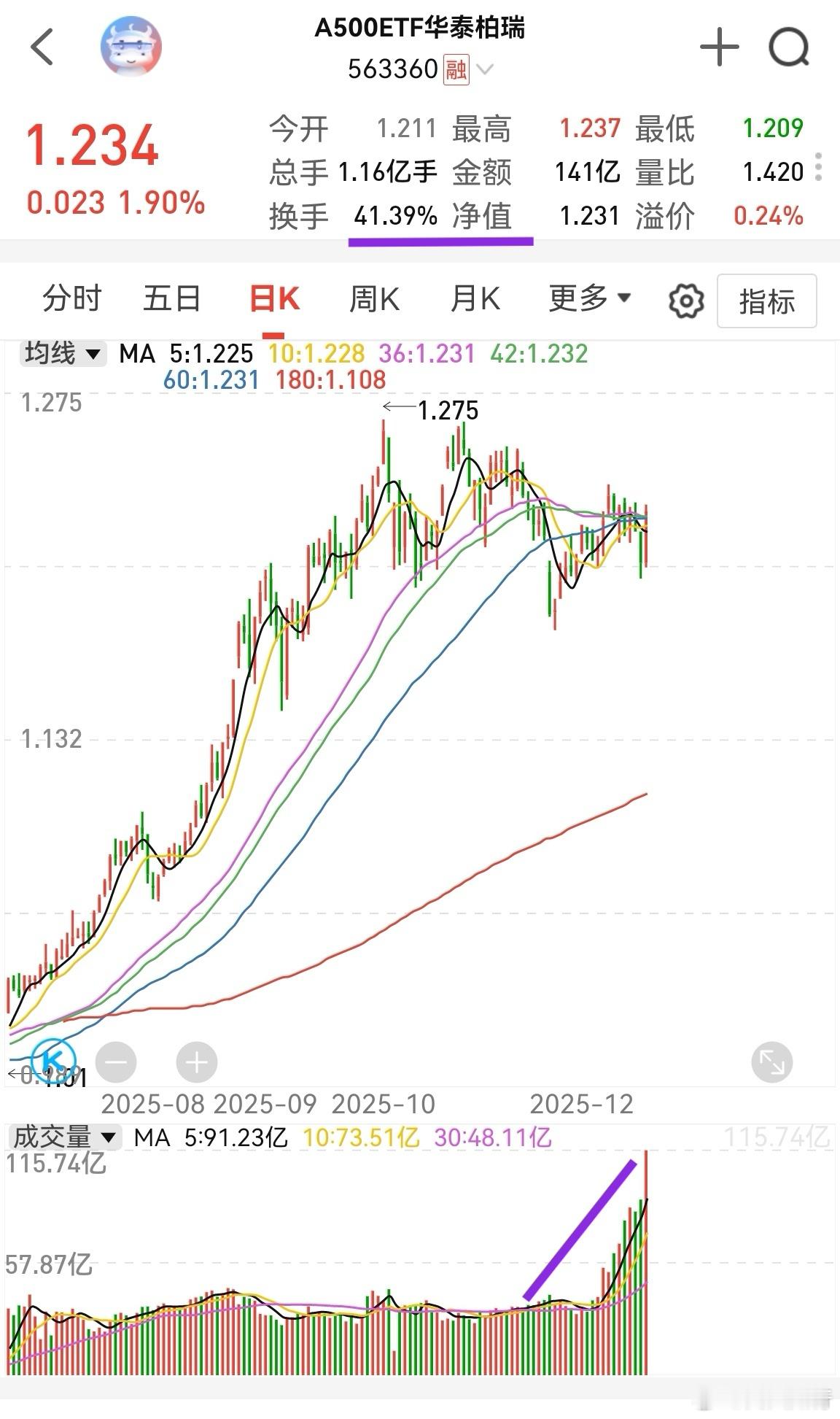 这个A500etf最近一天比一天量多,但涨幅基本持平。今天换手率达到了41%。这个东西竟然还能融券!事出反常必有妖!憋着坏,还是憋着好,感觉A股这些主力容易憋坏!