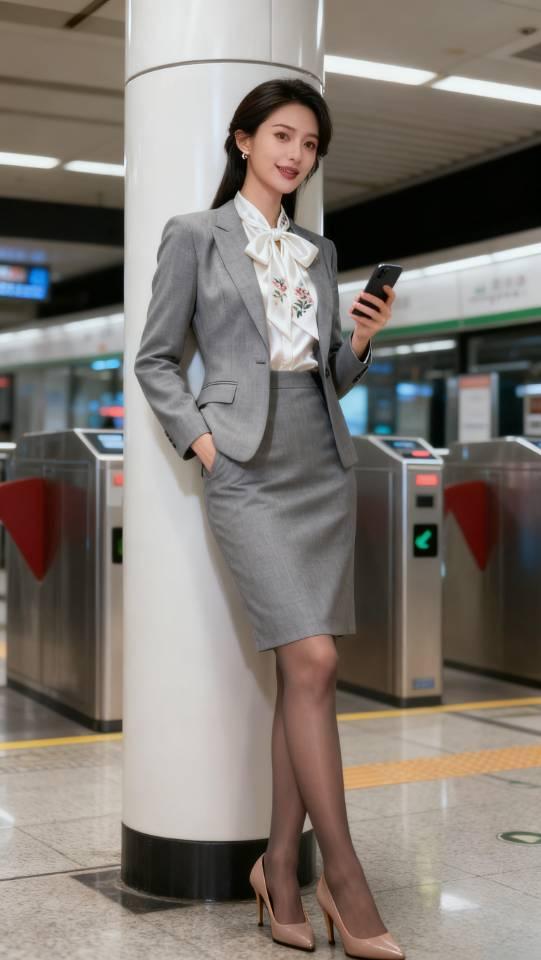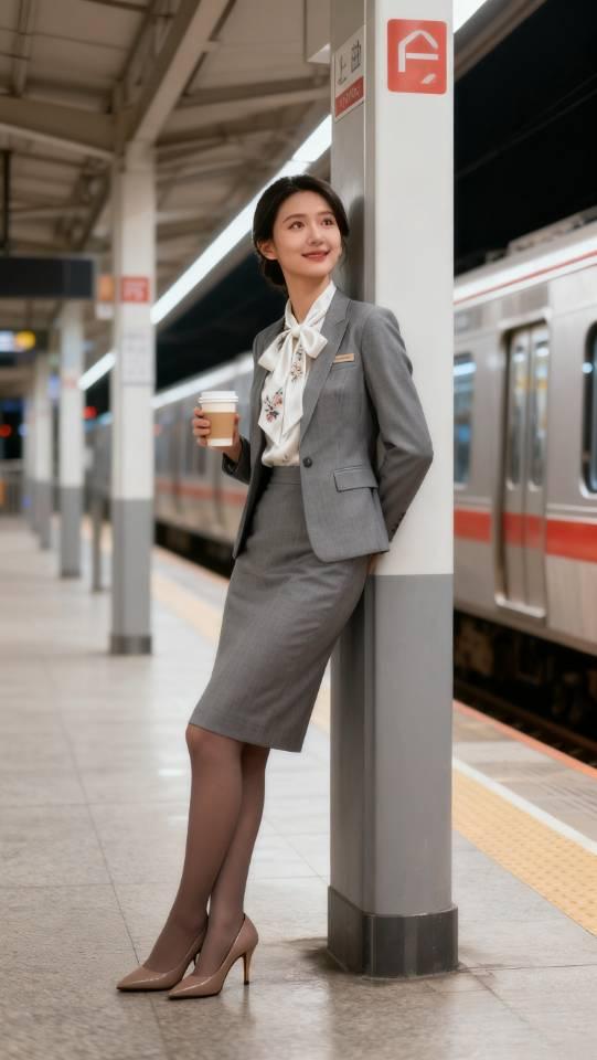 性格活泼的地铁女乘务员。地铁职业装女孩 职业套装