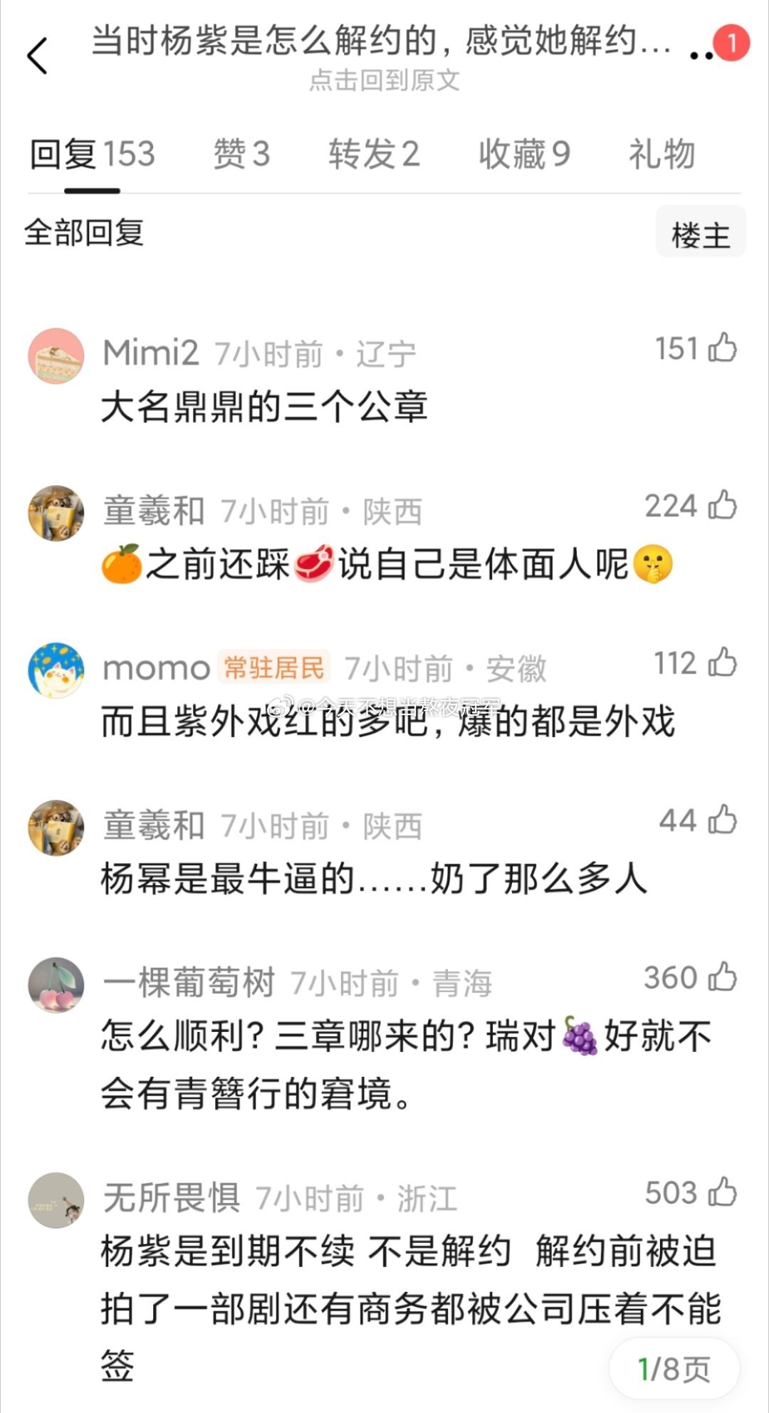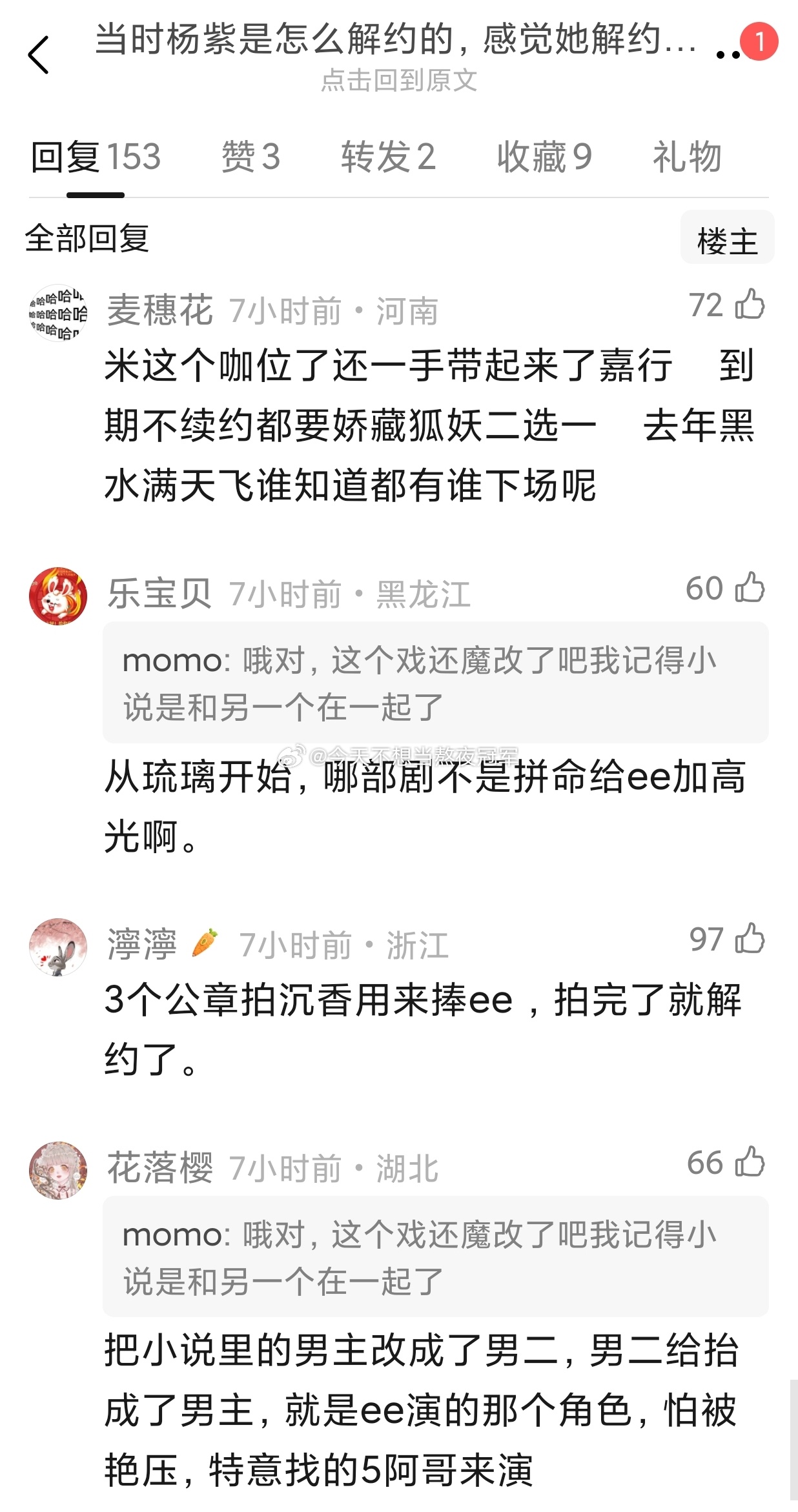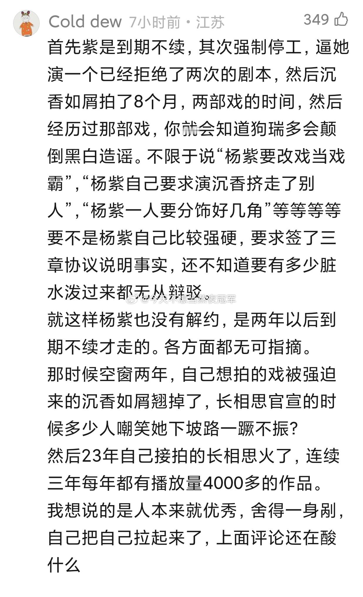 网友观近些年流量🌸和前东家分手有感,相较之下是不是只有杨紫算是和平分手? 没有闹得满城风雨,甚至还拿到了三章排面(当然对于hr这种视流量如命的公司,肯定是紫帮着消化了一部部烂IP,带了一个个新人杨紫出发进组