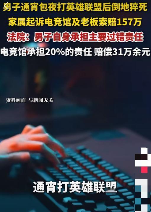 12月16日报道,云南楚雄,30岁男子与一朋友到一电竞馆打英雄联盟游戏,玩了一个多小时后,觉得没有尽兴直接改成通宵包夜,一直和朋友玩到次日凌晨6点多,直到朋友觉得累了要回家休息,这才才不玩了。不过男子的朋友回家了,男子却不愿意回家,又看邻座玩游戏,一看又是一个多小时,结果离开时,倒在卫生间内,经抢救无效死亡。事后,虽然经鉴定男子系心源性猝死,但是男子的家属难以释怀,认为如果不是电竞馆违规通宵营业等等,或许男子也就不会死亡,要求电竞馆赔偿157万余元损失。法院判了! 云南楚雄的金某(化名)真没想到,一次彻夜玩游戏竟然会害了自己,最让人关注的是,他去世后,家属向电竞馆索赔157万多元。 这起案件经历了一审和二审,最终法院的判决,也给大家上了很沉重的一课。 2025 年2月13日晚上,金某约了朋友李某,一起去大姚县的一家电竞馆玩《英雄联盟》。 两人晚上 9 点多到店,先玩了一个多小时,但还觉得不过瘾,金某直接把电脑消费模式改成了“通宵包夜”。 就这样,他一直玩到第二天早上6点多,李某实在熬不住,先回家休息,可金某还不想走,留下来看邻座玩家打游戏,又看了一个多小时。 早上7点25分左右,金某起身去卫生间,但没多久就倒在了卫生间门口,直到7点40分,邻座的玩家才发现他趴在地上,呼喊他也没有反应,赶紧叫来了网管。 大家把他翻过来,发现口唇发紫、已经没有呼吸,网管立刻拨打 120 和 110,急救医生赶到,全力抢救,但最终宣告金某心源性猝死。 事后鉴定显示,金某是因为冠心病急性发作猝死,而他生前还有高血压、脂肪肝等基础疾病。 家属无法接受这个结果,认为如果电竞馆没有违规通宵营业,并且及时提醒和救助,金某可能就不会出事,于是,他们把电竞馆和经营者告上法庭,索赔157万余元。 法院审理后,明确责任分配的两大关键点:一方面,金某是完全民事行为能力人,他明知自己有基础疾病,还通宵熬夜打游戏,不顾健康风险,这是导致他猝死的主要原因,自己要承担 80% 的责任,另一方面,电竞馆根据《互联网上网服务营业场所管理条例》规定,只能早上8点到晚上12点营业,而这家店违规通宵营业,夜间没有健康提醒,也没有及时巡查,金某倒地后近20分钟才被发现,错过了可能的救援机会,所以电竞馆要承担20%的次要责任。 最终,一审法院判电竞馆和经营者赔偿家属31万多元,双方不服提起上诉,但二审法院维持原判,认定一审法律适用正确,判决合理。 案件在网上传播后,引起网友热议。有人说:“自己不珍惜身体,通宵熬夜本来就伤身,有基础病还玩成这样,主要责任当然在自己”。 也有人认为:“电竞馆违规营业、不巡查,确实有责任,这31万赔得合理”;还有网友感慨:“熬夜代价太惨,以后真不能拿健康赌了”。 这起悲剧提醒我们两件事:对普通人来说,健康是第一责任,通宵熬夜、过度娱乐都是在给身体埋雷,尤其是有基础疾病的人,更不能心存侥幸。 对电竞馆和网吧这类经营者来说,合规经营是底线,不能为了赚钱违规通宵,同时要做好安全保障,例如设置健康提醒、加强夜间巡查、掌握基本急救知识,这样才能在关键时刻及时救助。 生命没有重来的机会,一场通宵游戏换来了无法挽回的悲剧,31万的赔偿也无法弥补家属失去亲人的痛苦。 这起案件的判决,既强调了个人对自己健康的责任,也没有纵容经营者的违规行为,划清了责任边界。 希望大家都能吸取教训,少熬夜、珍惜健康,也希望各类经营者守住合规底线,不再发生类似悲剧。 对此你怎么看? 信源:长江云新闻