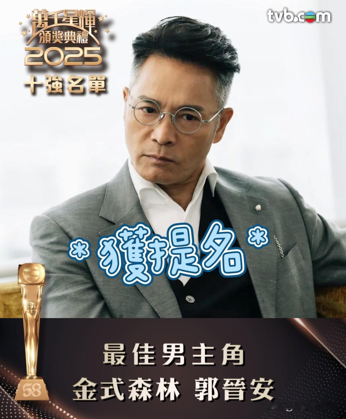 TVB【万千星辉颁奖典礼2025】于2026年1月4日举行,演员们辛苦付出的努力,当晚就会收到成绩表。近日TVB发布进入十强【最佳男主角】名单,获得提名有马国明、黄宗泽、陈豪、郭晋安、林保怡、罗子溢、陈展鹏、陈山聪、张振朗及周家洛等等。 其中郭晋安已在前不久承认已离职,这次男主角提名会是郭晋安最后一次。TVB 马国明