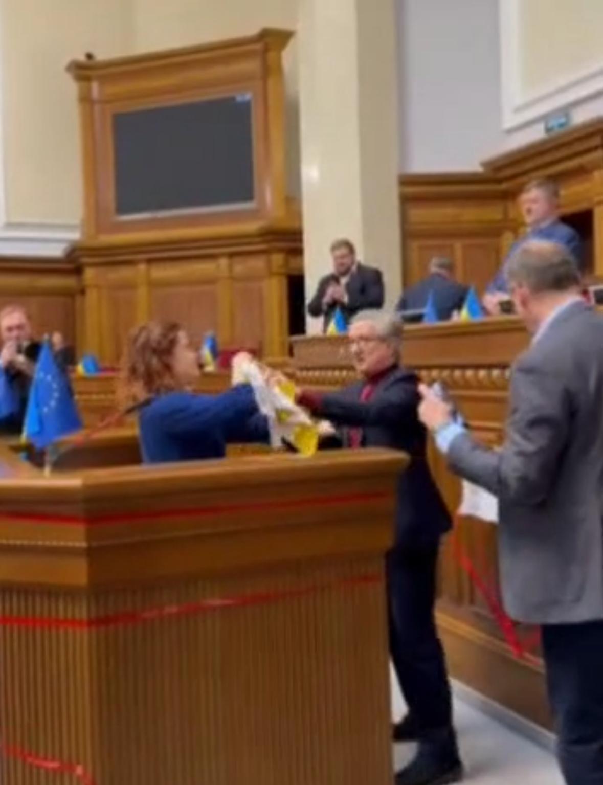 乌克兰议会开会变“武斗大会”,这场景真是活久见! 今儿个一大早,女议员别祖格拉娅带着海报就冲上讲台,直接给封了。海报上写着:“总司令必须下台!” 为啥这么大火气?她坚持认为总司令瑟尔斯基领导下的军队改革毫无希望,必须换人。 议长没办法,只好喊人“清理一下讲台上的创作成果”。其他议员一听,上去就撕海报。好嘛,文斗瞬间变武斗,几个人当场就推搡起来了,场面一度十分“激烈”。 更有意思的是,这位女议员从12月9号就开始“罢工”了,发誓不达目的就让议会啥也干不成。前线吃紧,后方“演武”,这场面真是让人哭笑不得。 要我说,这开会费的不是口舌,是体力啊!各位看官,你们觉得这场“全武行”是真性情,还是太儿戏?