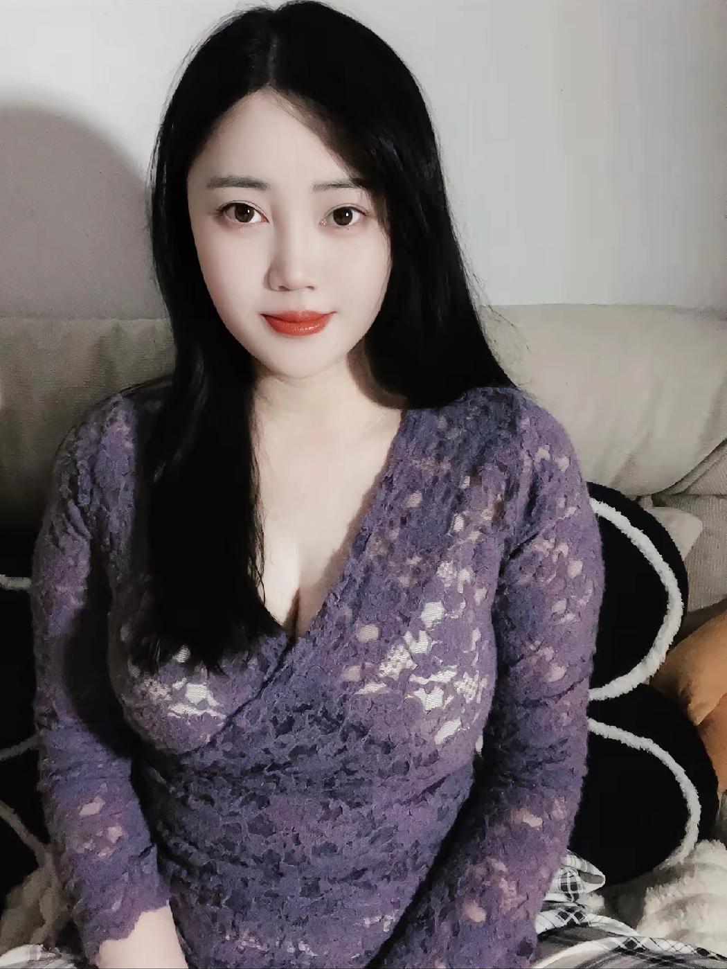 温柔紫调穿搭,甜美笑容,居家自拍