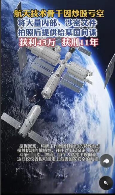 一波未平,一波又再起!前脚军工领域刚揪出刘卫东这只“大老虎”,后脚航天圈就曝出个“糊涂虫”——一位技术骨干为了补炒股亏空,把涉密文件当“筹码”换了43万,结果直接被判了十一年! 这位被网友骂作“糊涂虫”的技术骨干,名叫张哲(化名),42岁的年纪正是事业黄金期。老家在陕南农村,父母都是面朝黄土背朝天的农民,他从小就是全村的骄傲,高考以县理科前三的成绩考入西北工业大学航天工程专业,读研期间就跟着导师参与过卫星姿控系统的预研项目。 毕业后直接进入航天某研究院,从基层设计师一步步做到技术组长,手上掌管的都是涉及航天器动力系统的核心涉密资料,单位给他配了专用保密电脑、独立办公隔间,每年的保密培训和考核从没有落下过。同事们提起他,都记得他刚入职时的样子:穿着洗得发白的格子衬衫,加班到深夜就泡一碗方便面,说“能为国家造火箭,比啥都光荣”。 谁也没想到,这份“光荣”在股市的涨跌中慢慢变了味。2019年,张哲听亲戚说炒股能快速赚钱,想着给刚上初中的儿子攒出国留学的费用,便偷偷把家里的20万积蓄投了进去。起初确实赚了几万,他尝到甜头后越发贪心,不仅抵押了房产贷了30万,还向同事借了15万加杠杆。 可股市从来不是稳赚不赔的赌场,2021年下半年,他重仓的几只新能源股票连续跌停,短短三个月就亏了近60万,房贷和欠款压得他喘不过气。妻子劝他及时止损,他却抱着“再赌一把就能回本”的心态,四处找路子筹钱,直到有一天,他在网上看到有人高价收购“行业内部资料”,一个疯狂的念头在他心里生了根。 涉密文件哪是能随便动的?张哲比谁都清楚后果。单位墙上“涉密不上网,上网不涉密”的标语每天都能看到,每年的保密警示教育会上,那些因泄密被判重刑的案例反复播放。可被债务逼红了眼的他,早已把这些警告抛到了脑后。他利用工作便利,趁午休时间将3份机密级、5份秘密级文件用手机拍照,再通过加密聊天软件传给了网上联系的“买家”。 第一次交易拿到10万时,他还抱着侥幸心理,觉得“就这一次,用完就收手”,可尝到甜头后,他又先后5次泄露更多涉密信息,直到收到43万“报酬”的第三个月,就被国家安全机关找上门来。 搜查现场的画面让办案民警都觉得惋惜:张哲的办公桌上,还放着他刚获得的“年度优秀技术工作者”证书,抽屉里藏着儿子画的“爸爸是航天英雄”的漫画,而他手机里,全是和“买家”的交易记录以及股市亏损的账单。 审讯时,张哲哭着说“我对不起国家的培养,对不起父母的期望”,可世上没有后悔药。经专业机构鉴定,他泄露的涉密文件中,有2份涉及航天器推进系统的核心参数,一旦被境外势力获取,可能导致我国某新型航天器的技术路线被破解,后续研发要多花数年时间和上亿元资金才能弥补。 航天领域的保密工作,从来都是国家安全的重中之重。从东方红一号卫星上天,到嫦娥探月、天问探火,我国航天事业的每一步突破,都离不开无数科研人员的默默付出,更离不开严格的保密体系。张哲所在的研究院,光是保密制度就有十几项,从文件收发登记到电脑加密防护,再到离职人员的保密审查,层层把关就是为了守住国家的核心技术。 可再严密的制度,也挡不住一颗贪婪且侥幸的心。他以为43万能填补亏空,却没想到这背后是十一年的牢狱之灾,是一辈子无法抹去的污点,更是对国家航天事业的严重伤害。 反观军工领域的刘卫东,曾任某军工企业高管,手握采购审批大权,却利用职务之便收受贿赂,为境外势力提供军工产品的采购清单和技术指标,最终被判无期徒刑。这两起案件,一个是身居高位的“大老虎”,一个是身处关键岗位的“技术骨干”,他们都曾接受过国家的多年培养,却因为一己私欲,把国家利益当成了牟取私利的工具。 他们的下场警示我们:国家安全无小事,保密防线不能有丝毫松懈。无论是手握大权的领导干部,还是身处关键岗位的普通员工,只要触碰了保密红线,就一定会受到法律的严惩。 国家的强大,离不开各行各业的坚守与付出,更离不开每一个人的责任与担当。航天事业是国之重器,军工领域是国家安全的基石,这些领域的涉密信息,关系到国家的主权、安全和发展利益。张哲用十一年牢狱之灾换来的教训,应该让每一个人警醒:贪婪是万恶之源,侥幸心理只会让人坠入深渊。无论身处何种岗位,都要守住初心,牢记使命,把国家利益放在首位,绝不能因为一时的私欲,做出损害国家利益的事情。 各位读者你们怎么看?欢迎在评论区讨论。