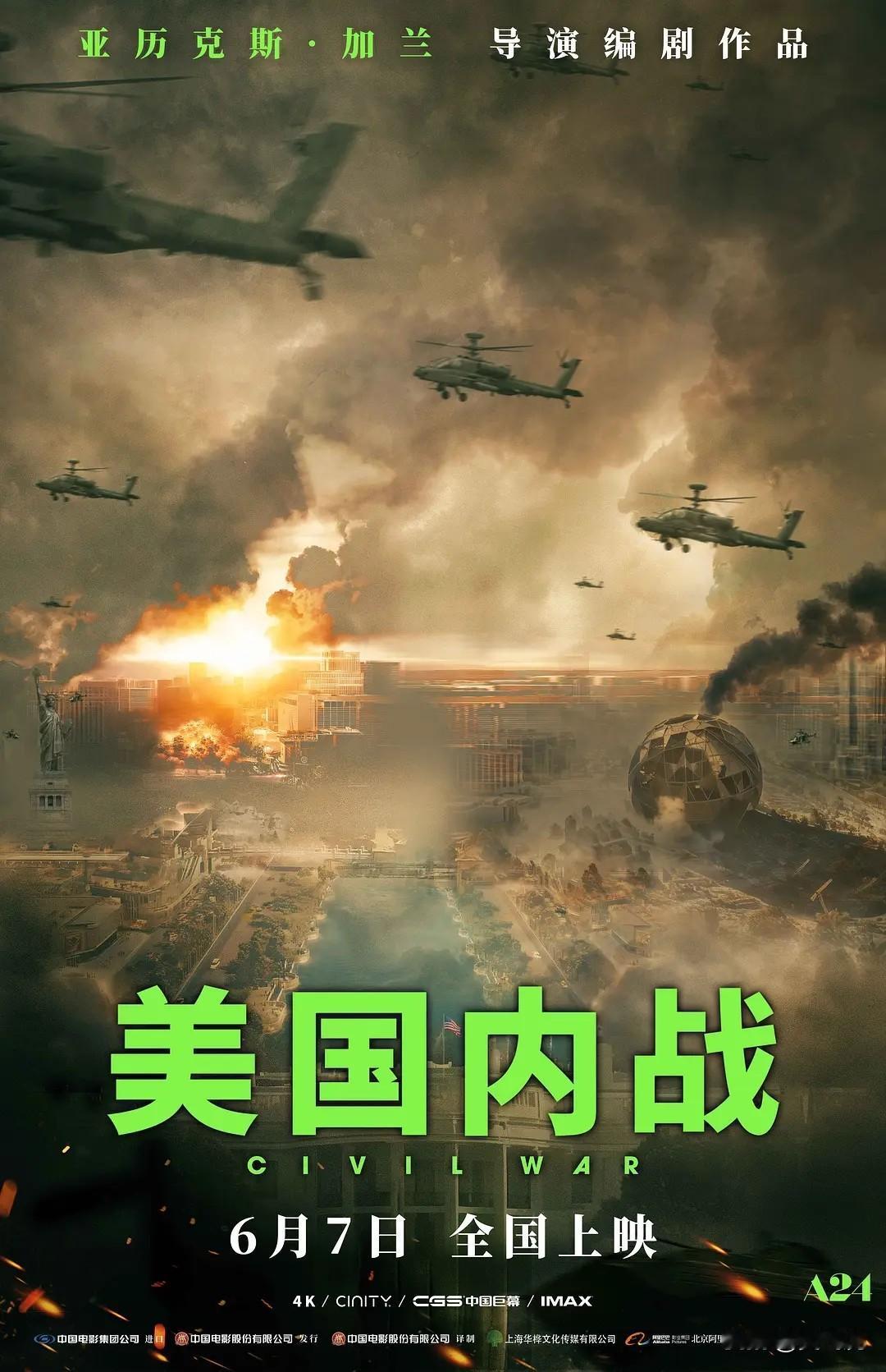 美国人居然拍摄电影《美国内战》 ♦这是2024年反乌托邦战争片《美国内战》全球总票房达1.27亿美元,此片有在中国上映。 ♦影片设定在未来,美国因政治极化爆发内战,加州与德州牵头的叛军直逼华盛顿,对抗独裁总统。战地摄影师最终跟随叛军攻入白宫,躲藏的总统被叛军当场枪杀,年轻摄影师杰相机定格下这一震撼瞬间。 ♦这部《美国内战》电影深刻叩问社会分裂、新闻伦理与文明崩塌的代价,成为年度现实警示之作。 美国电影真的敢拍,近十年影视中白宫不知被炸毁多少次,而这部电影,干脆总统直接被枪杀。 这就是美国[灵光一闪][灵光一闪]