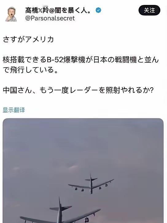 美军B52轰炸机出现,日本立刻挺起了胸膛,说:中国有本事再照一次!在中俄联合巡航的第二天,美军出动B52给日本撑腰。不少日本网民在看到美军B-52出现的消息后情绪高涨,甚至有人留言:“中国有本事再用火控雷达照一次!”——这明显是指此前日本F15被歼15雷达照射事件。看到这消息,真让人忍不住笑。 中俄空军12月9日刚完成年度第十次联合空中战略巡航,轰-6和图-95等多架飞机从不同方向进入西太平洋,日本自卫队战机全程升空伴飞监视。第二天12月10日,美军两架B-52H战略轰炸机就飞到日本海上空,日本航空自卫队赶紧派出三架F-35A和三架F-15J战机跟上,形成混合编队,进行所谓战术协同训练。日本防卫省发声明,说这显示了同盟的快速反应能力,顺便强调反对单方面改变现状。 这时间点卡得太准了,前脚中俄巡航刚走,后脚美日就来一波。B-52是老机型了,服役六十多年,主要靠升级维持现役,能带核弹头,但这次只练基本编队,没公布高强度科目。演习地点选在日本海,离中俄巡航的东海和西太平洋远着呢,也没靠近辽宁舰编队活动区。美军没派自家更先进的隐身战机,全靠日本飞机护航,这摆明是做个姿态,安抚盟友情绪。 日本一些网络用户看到防卫省发布的照片后,评论区热闹起来。有人提到12月6日歼-15在公海上对日本F-15J使用火控雷达照射的事,直接发帖说中国要是有胆子就再来一次。类似言论挺多,配上美日战机并排飞的图片,语气硬气,但全靠美军飞机撑场面。那次雷达照射,日本防卫省说持续时间长,第一次几分钟,第二次半个多小时,称这是危险行为。但中方回应是,日本战机先抵近中国海军训练区,正常警戒而已。 说白了,日本对中俄常态化巡航越来越敏感。巡航是年度计划,不针对第三方,日本却总觉得是冲着自己来。拉上美军飞一圈,表面上看是找回面子,实际暴露了底气不足。B-52飞过来,日本网民就兴奋,这心态有点像借外力壮胆。 中国国防部多次表态,军队行动遵循国际法,维护主权和和平。外交部也说,日方别对号入座,没必要大惊小怪。日本防卫大臣跟北约那边通话,表达关切,但地区稳定还得靠各方克制对话,不是比谁飞得勤或喊得响。 这事看下来挺有意思,一架老轰炸机飞过去,就能让某些人腰杆直起来,但实力格局不是一两次飞行能改的。中国发展国防,是为了护住自家和平,不是冲谁去。别人怎么秀,怎么说,我们该干啥干啥,节奏稳着呢。地区和平,大家都希望,别总搞这些小动作,踏实点多好。