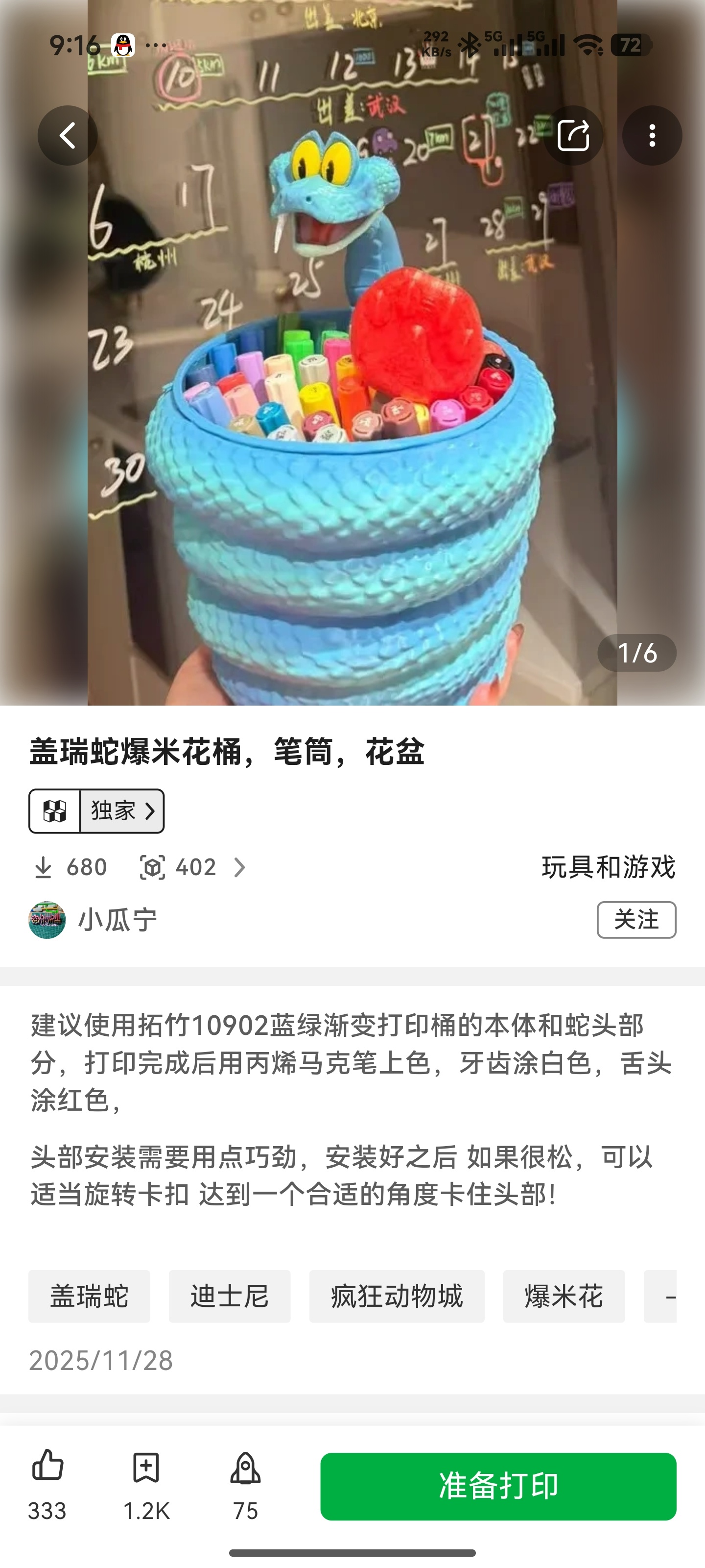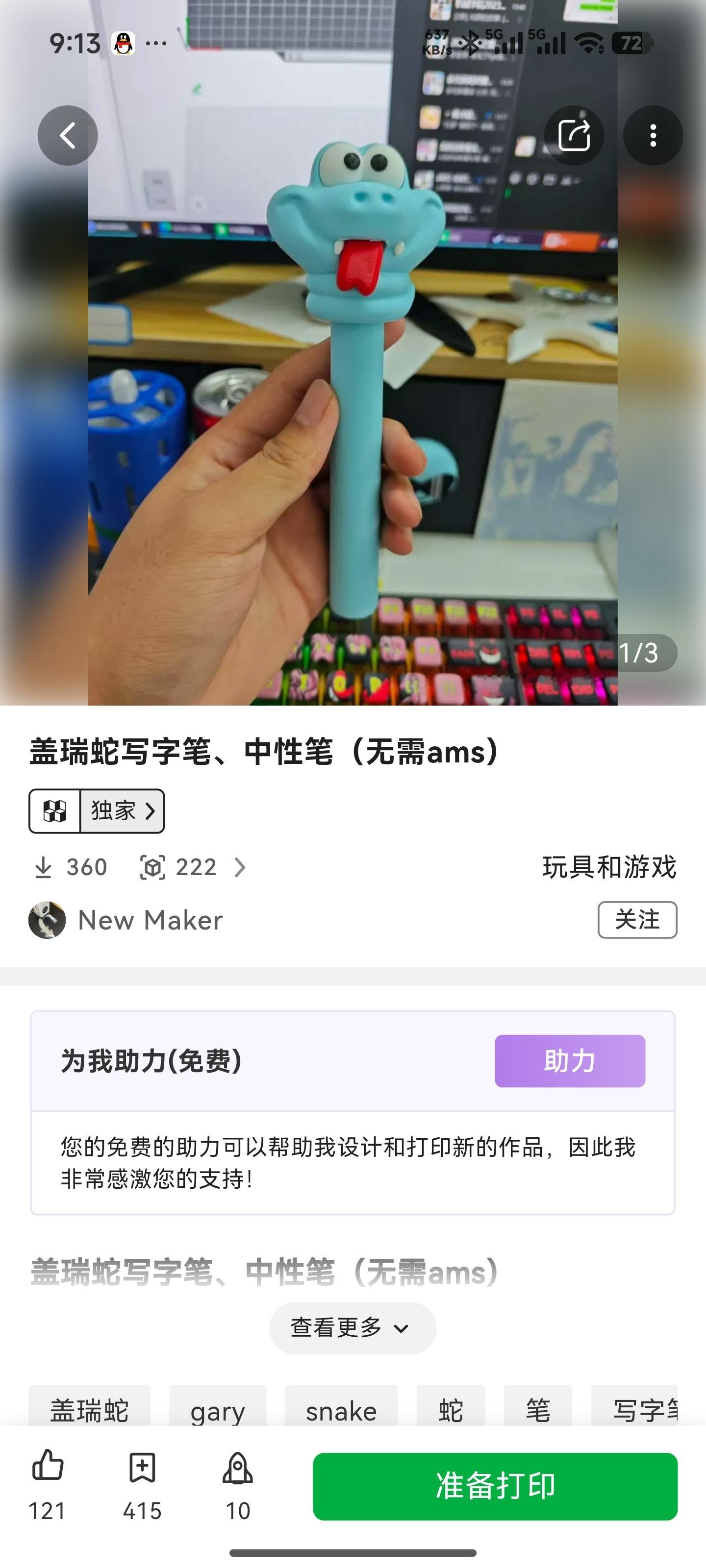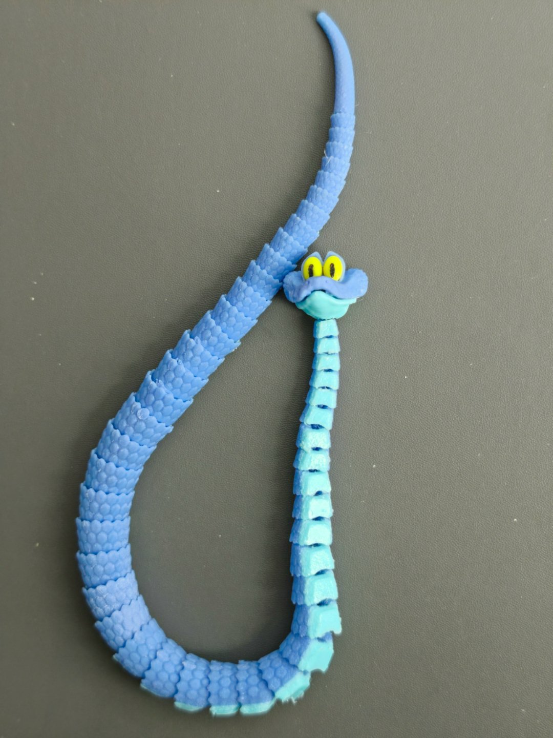 帮朋友代工的3D打印盖瑞蛇,疯狂动物城同款。第一次用渐变色,也尝试了一下鳞片质感怎么做。纯练手了。还可以做笔,笔筒等等。成本根据尺寸来,多大都行。这种小尺寸的就3,5块钱,就送朋友了。喜欢的都可以找我代工,各种设计的都有。只需要材料的成本费。打印机闲着也是闲着。