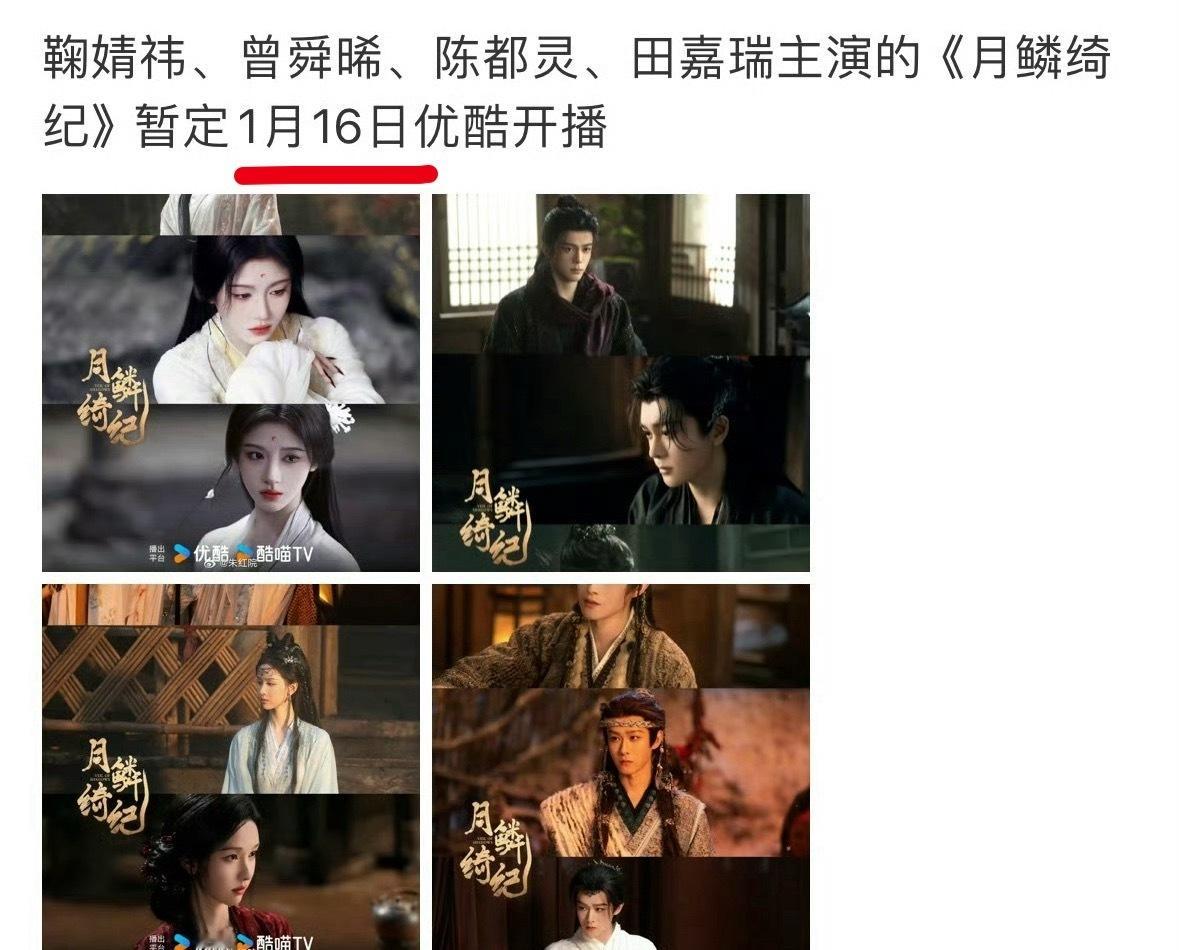 鞠婧祎、曾舜晞、陈都灵、田嘉瑞《月鳞绮纪》暂定1.16来这部剧确实要来了,最近都