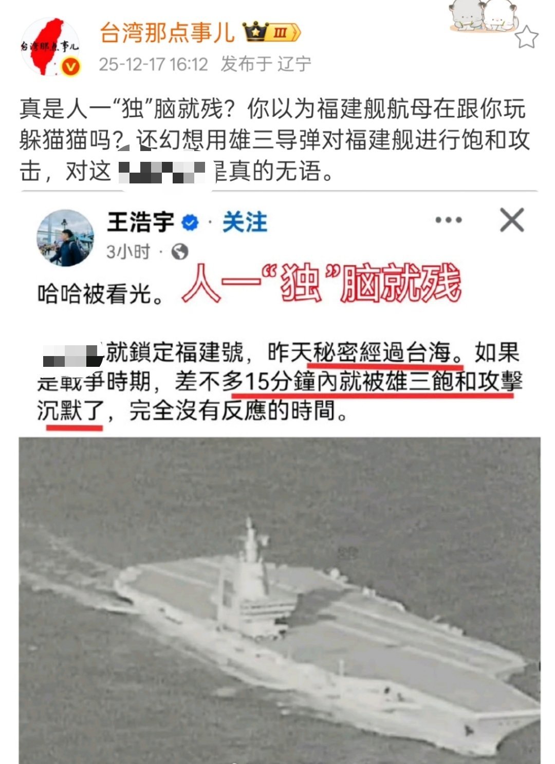 福建舰 台湾海峡赶紧造新舰吧,蛙蛙已经放话了,15分钟就能干掉福建舰。