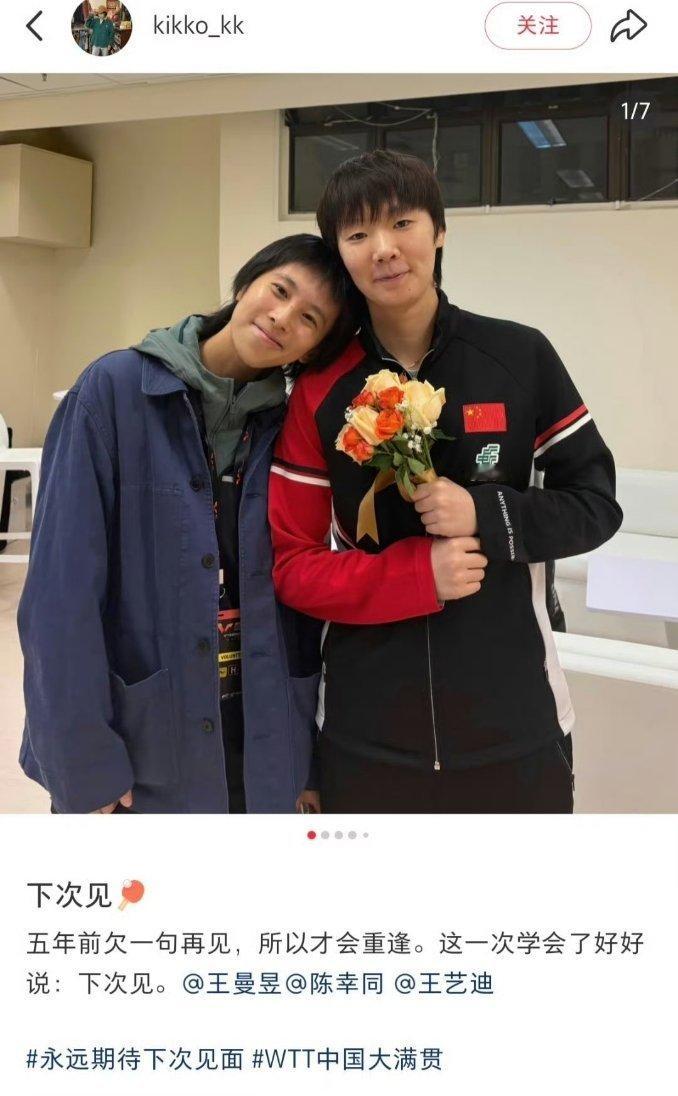 孙颖莎与黄镇廷的女儿合影啦—-楹楹真的好团宠哦香港总决赛期间,莎莎与大圣的女