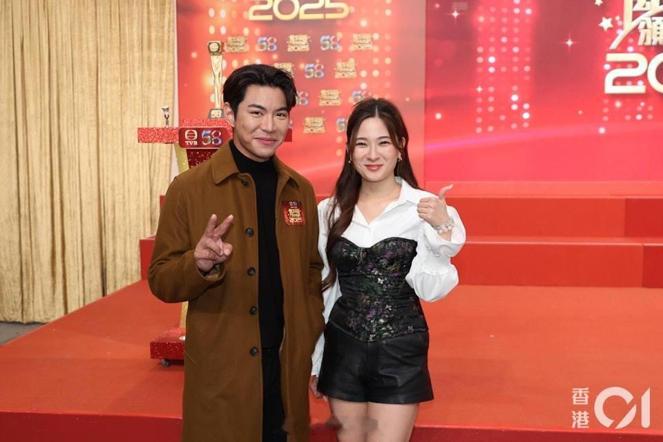羅天宇陳懿德「情侶檔」現身鬥嘴 互讚歌喉有火花互撐對方有獎攞《萬千星輝頒獎典禮2025》即將舉行,日前(15日)公布入圍名單,入圍「最佳男配角」的羅天宇(Joey)與入圍「最佳女主持」的陳懿德(Rachel)盛裝亮相為頒獎典禮造勢。這對「緋聞情侶檔」接受《香港01》訪問時,雖然被問到是否為「情侶檔」時堅決否認,但二人在鏡頭前互動親密,互窒對方歌喉,為現場增添不少歡樂氣氛。羅天宇與陳懿德「情侶檔」現身鬥嘴。(陳順禎 攝)日前播出的《中年好聲音4》中,有一段「獅子王」唱歌的片段播出,不少網民憑聲線猜測到面具後的人就是羅天宇,但羅天宇卻堅決表示不知道是誰。羅天宇表示自己收到很多信息,都表示「獅子王」就是他,而陳懿德亦指自己收到不少信息,被問到「獅子王」是否就是羅天宇。至於羅天宇被問到「獅子王」唱成怎樣時,他笑指:「唱得OK啦,我唱得好啲囉」。陳懿德聽罷立刻反擊:「我個獅子唱得好過你!」她表示自己沒能仔細看過那段影片,但承認的確收到不少訊息問「係咪你嚟㗎?」陳懿德亦指自己收到不少信息,被問到「獅子王」是否就是羅天宇。(陳順禎 攝)雖然羅天宇自認唱得更好,但陳懿德毫不示弱:「我覺得獅子唱得好過你!」羅天宇則堅持:「我覺得你唱得最好!我聽過你唱歌,你又唔參加?」談到兩人未來是否有機會公開合唱,陳懿德表示,他們私下在劇集拍攝期間曾互相給予唱歌意見,但確實還沒有一個公開場合能夠讓二人合唱,期待未來會有機會。雖然羅天宇自認唱得更好,但陳懿德毫不示弱:「我覺得獅子唱得好過你!」(陳順禎 攝)訪問中,陳懿德提到自己憑藉《聲秀》入圍「最佳女主持」獎項,心情忐忑。她坦言,看到名單上全是資深的前輩,自己屬於「年資最短嗰個」,獲獎信心不高,但能與阿姐(汪明荃)等前輩同列一個名單,已經感到非常滿足和榮幸。陳懿德將參與《聲秀》主持視為一個重大成長機會,她表示這次的經歷讓她從單純專注於個人風格,轉變到積極參與各部門工作,從寫稿、音響到與導師學員溝通,學習到更多協調與合作的技巧。她稱這次主持是一個「打大佬」的過程,相信能讓她成為更謹慎、更沉穩的主持人。陳懿德提到自己憑藉《聲秀》入圍「最佳女主持」獎項,心情忐忑。(陳順禎 攝)羅天宇則對陳懿德的努力讚不絕口,他認為主持一場大型Live Show是極具挑戰性的任務,對她的努力和表現感到欣賞,更稱讚她「好勤力,好欣賞佢」。談到投票,陳懿德表示雖然自己獲獎機會不高,但衷心希望大家能投票支持《聲秀》奪得「最佳綜藝節目」,因為這是眾人用心、合力製作的一個重要節目。羅天宇則對陳懿德的努力讚不絕口。(陳順禎 攝)羅天宇也附和說,知道大家會將第一票投給心中所屬的演員或節目,但希望大家在投完第一票後,「第二、三票就可以諗下我哋啦」,同時也呼籲大家踴躍支持陳懿德主持的節目。羅天宇同時也呼籲大家踴躍支持陳懿德主持的節目。(陳順禎 攝)