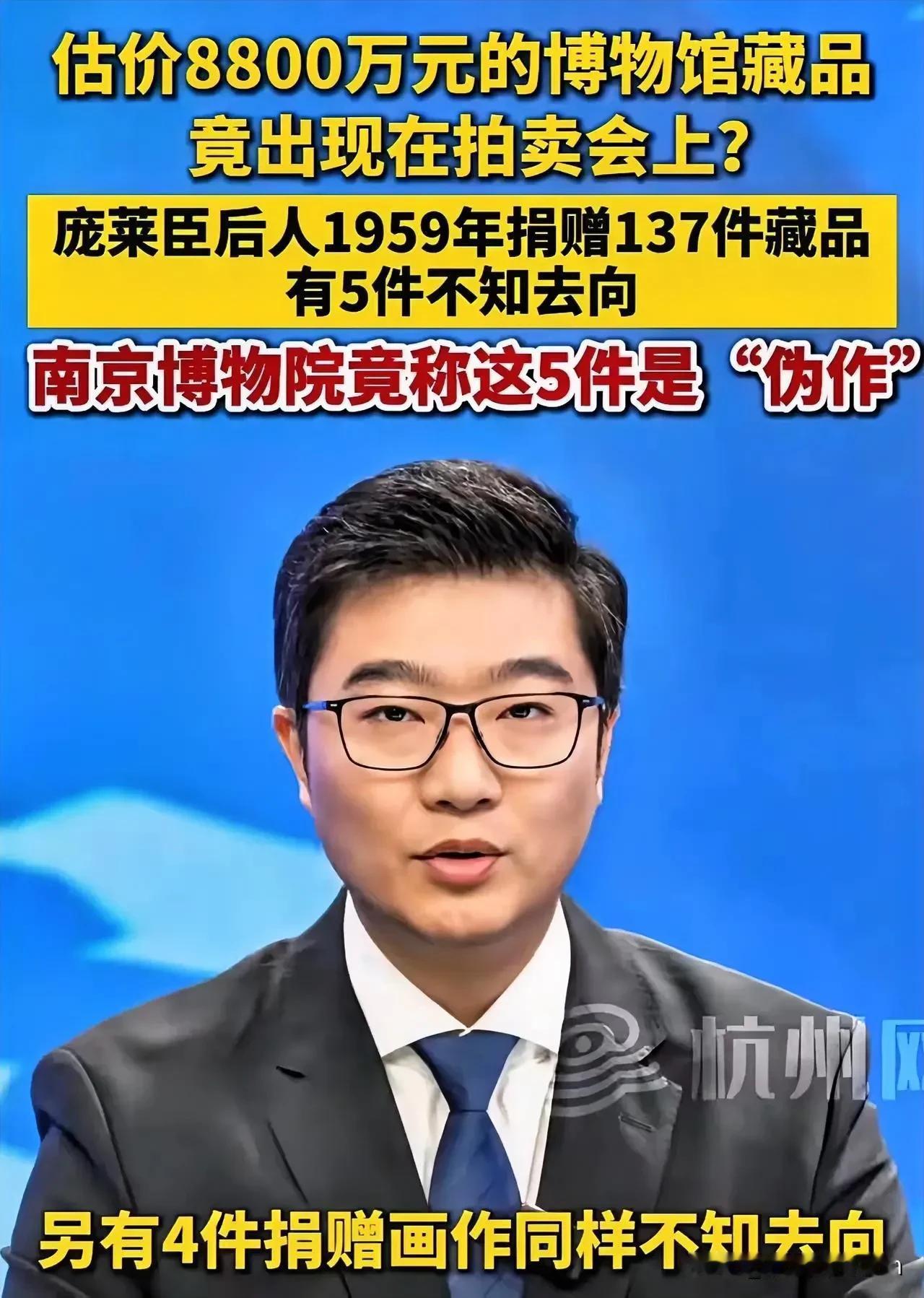 南京博物馆这次尴尬了。估价8800万元的捐赠古画准备拍卖,被捐赠人发现了,一查才知道,自家捐赠给南京博物馆其它的4件文物也都不见了。南京博物馆怕是做梦都没想到,时隔六十多年,捐赠者的后人居然还记着这笔账! 庞莱臣是谁? 那是民国时候响当当的大收藏家,手里攥着的全是历代书画里的硬通货,随便拿出一件都是能镇馆的精品。1959年,他的后人捧着137件家传藏品送到南京博物馆,不是为了钱,是觉得这些宝贝该让更多人看见,是实打实的爱国心。 当时馆里给开的票据写得明明白白,每件藏品的名称、年代、鉴定意见都列得清清楚楚,庞家人小心收着这张纸,一收就是六十多年——他们哪儿能想到,这张纸后来会变成讨说法的凭证。 这次是庞家后人刷拍卖预展的时候,眼瞅着一幅画眼熟得慌,再一看名称、款识,跟当年捐赠清单上那幅估价8800万的古画丝毫不差。心里咯噔一下,赶紧去问博物馆,这画怎么跑拍卖场去了?馆里一开始支支吾吾,绕了好几个弯,才扯出一句“那几件是伪作,早就处理了”。 可庞家手里不只有捐赠票据,还有当年馆方请专家做的鉴定报告,白纸黑字写着这些是真品,是“具有重要艺术价值”的文物。 六十多年里,馆方从没跟庞家提过“伪作”这回事,更没说过要处理这些藏品,连基本的保管状况都没主动反馈过。现在文物突然现身拍卖市场,转头就说这些是不值钱的伪作,这话说出来,连最基本的逻辑都站不住脚。 公立博物馆管着的从来不是自家的私产,是全社会的文化资产。别说这是民众主动捐赠的珍贵藏品,就算是馆里通过其他渠道征集的文物,也得有完整的入藏、保管、流转记录,每一步都得经得起推敲。 可南京博物馆倒好,对这批捐了六十多年的文物,既没公示过展出信息,也没更新过保管状态,现在出了失踪的岔子,就拿“伪作”当挡箭牌,这哪里是对文物的敬畏,分明是对责任的逃避。 庞家人的委屈,不止是藏品失踪。当年把家传的宝贝捐出去,是盼着这些文物能在博物馆里好好待着,能让更多人看见老祖宗的手艺,能一代代传下去。结果六十多年过去,连这些文物是真的假的、在不在馆里都成了谜,换谁能不心寒? 他们要的不是赔偿,是一个明确的说法:这些文物到底去哪了?是被妥善保管了,还是被违规处置了?那些“伪作”的说法,到底有多少真凭实据? 这事戳中的,是公众对文博机构最基本的信任底线。这些年,不少人把家传的文物、古籍捐给公立机构,图的就是这些宝贝能有更好的保护条件,能发挥更大的文化价值。要是博物馆连“看好东西、说清去向”都做不到,遇到问题就敷衍搪塞,以后谁还敢把自己珍爱的宝贝交出来? 文博机构的分量,从来不是靠藏了多少稀世珍宝撑起来的,是靠对每一件文物的负责、对每一份公众信任的珍视。南京博物馆现在最该做的,不是急着撇清关系,是立刻启动全面清查,把这批137件捐赠文物的每一件流向都理清楚,把鉴定的依据、处置的流程都摊在明面上——这是给庞家的交代,也是给所有信任文博机构的公众的交代。 各位读者你们怎么看?欢迎在评论区讨论。