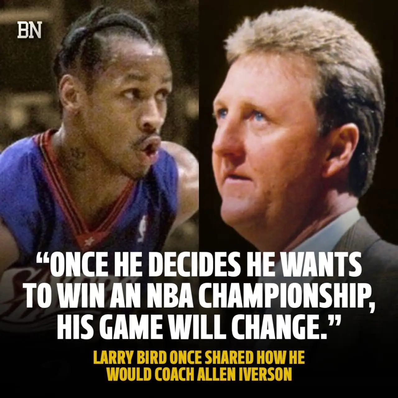 大鸟回忆当年可能执教艾弗森的看法:“他只要想赢得总冠军就会改变比赛的态度了。”全网热点共创计划体育共创官