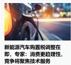 新能源汽车的购置税可能要调整啦!这也是说明新能源汽车的扶持要结束了,未来就看新能源汽车的核心竞争力啊!在价格上不一定会有很大的优势,所以大家可以看下新能源汽车明年会不会有滑坡呢!用了新能源汽车的人感受怎么样啊!