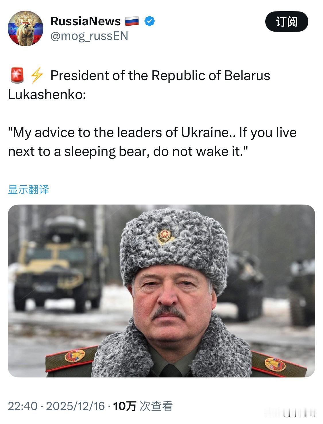 白俄罗斯共和国总统卢卡申科: “我对乌克兰领导人的建议是……如果你住在睡着的熊