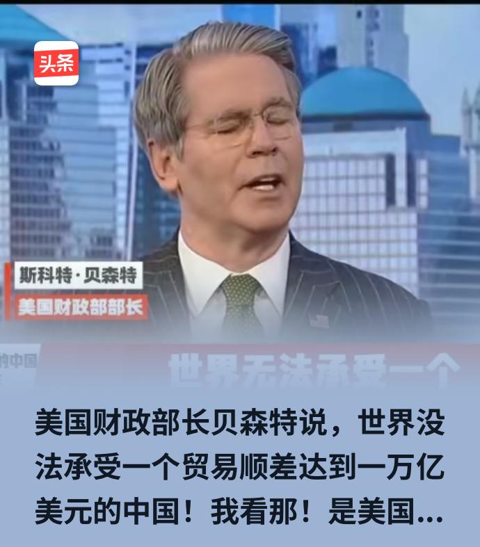 老嫂子又破防了 贝森特说,世界无法承受中国的贸易顺差达到1万亿美元! 1万亿美元是什么概念?换算成白银是100亿两,想当初大清在庚子赔款时是四亿五千万两白银,相当于全体国民每个人一两白银! 现在,中国一年就从全世界挣回了一百亿两,是当时的20多倍,你说西方人能不破防吗? 说句不好听的话,如果不是现在我们国防强大了,这些西方的强盗眼睛都不带眨一下,就会组成新的n国联军前来抢劫,但现在他们不敢了!注意不是不想,而是不敢了。 从这个角度来讲,每年2000多亿美元的军费开支还多吗? 最有意思的是,贝森特说世界无法承受我们的庞大贸易顺差,他又有什么办法呢? 关税打压已经证明失败了,技术封锁也被证明适得其反。 因为我们已经越打越强了,在电动汽车,光伏产业,特高压发电等等科技行业已经领先世界。 美国现在能拿的出手的也只有AI产业了,而即便是ai也不敢说一定比我们强,因为咱家的AI产业走的是与制造业相结合的方式,和美国的路径完全不同! 美国现在就想让制造业回流,可虚幻的金融股市以及他们的AI产业并不能支持美国人的梦想和特朗普的野心。 想消除这么多的贸易逆差,美国人看来很难办 要不的话,我给她出个主意吧,把阿拉斯加、关岛和夏威夷要不就卖给咱们吧,我们保证不还价。 其他的还真就看不出来有啥需要他们的!F22、福特号那种老掉牙的东西,估计我们看都不想看一眼了。 有了马上就要服役的六代机,有了正在建造的核航母,我们还需要他们的落后技术吗? 就喜欢看老嫂子破防又无可奈何的样子!