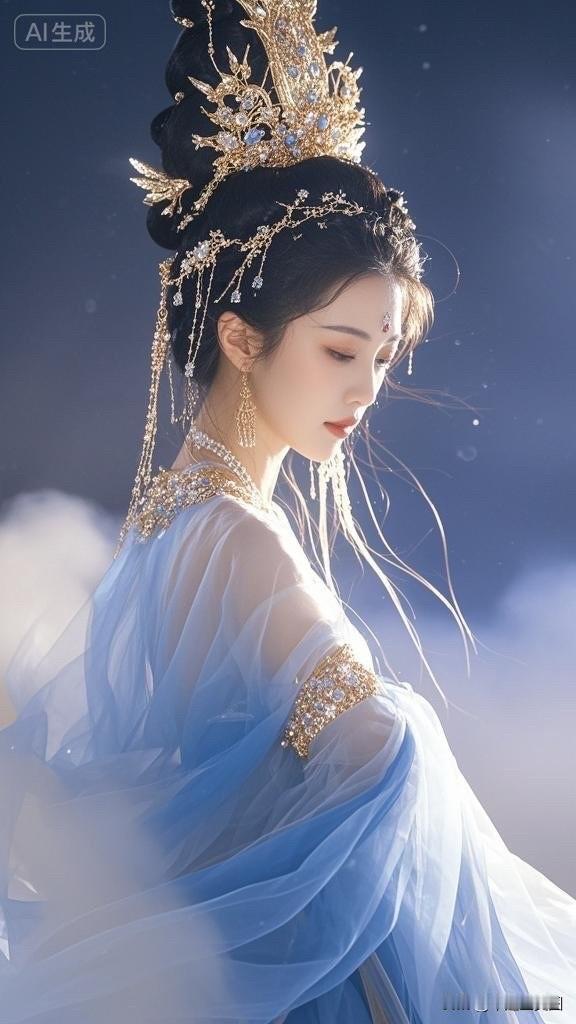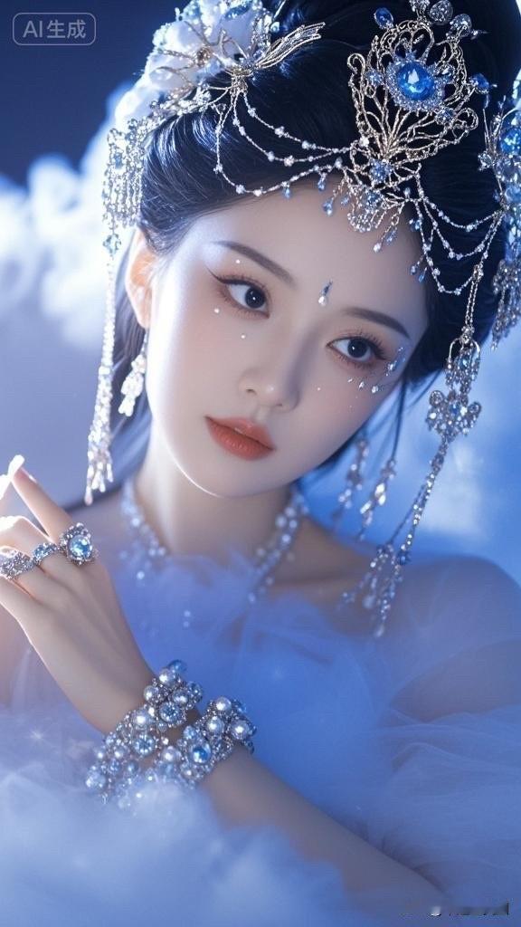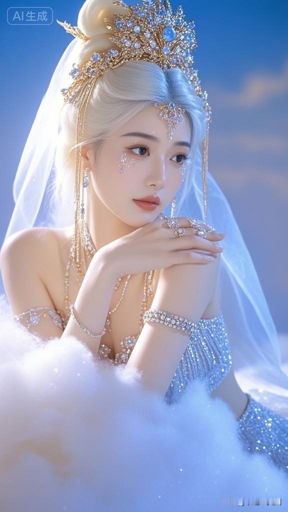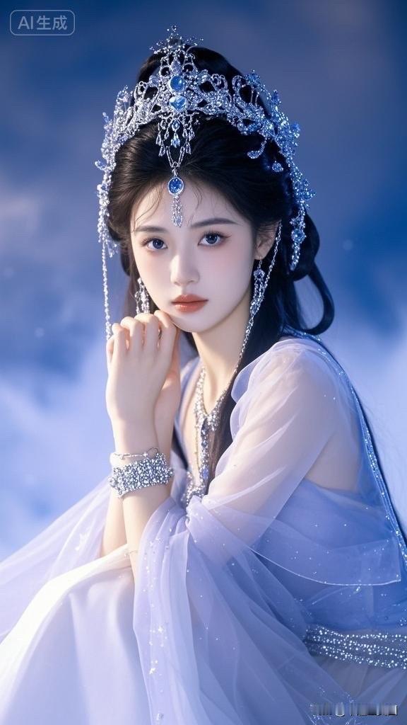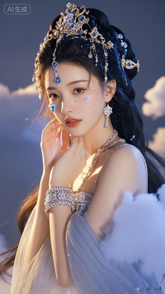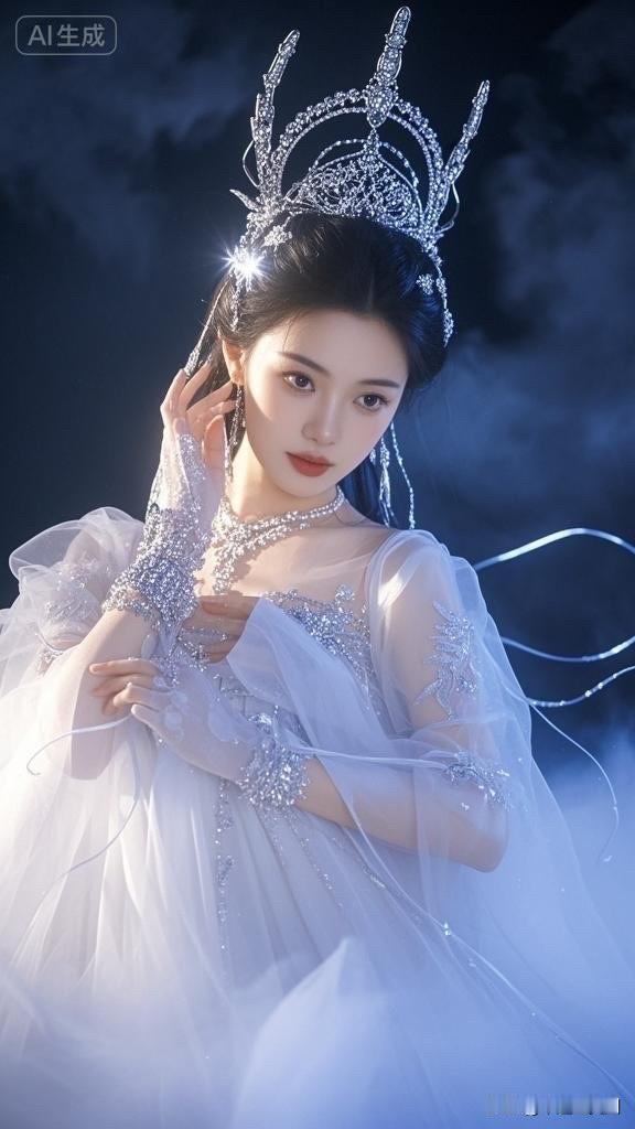 梦幻古风少女,头戴华美王冠,轻纱飘逸,宛如仙子降临。