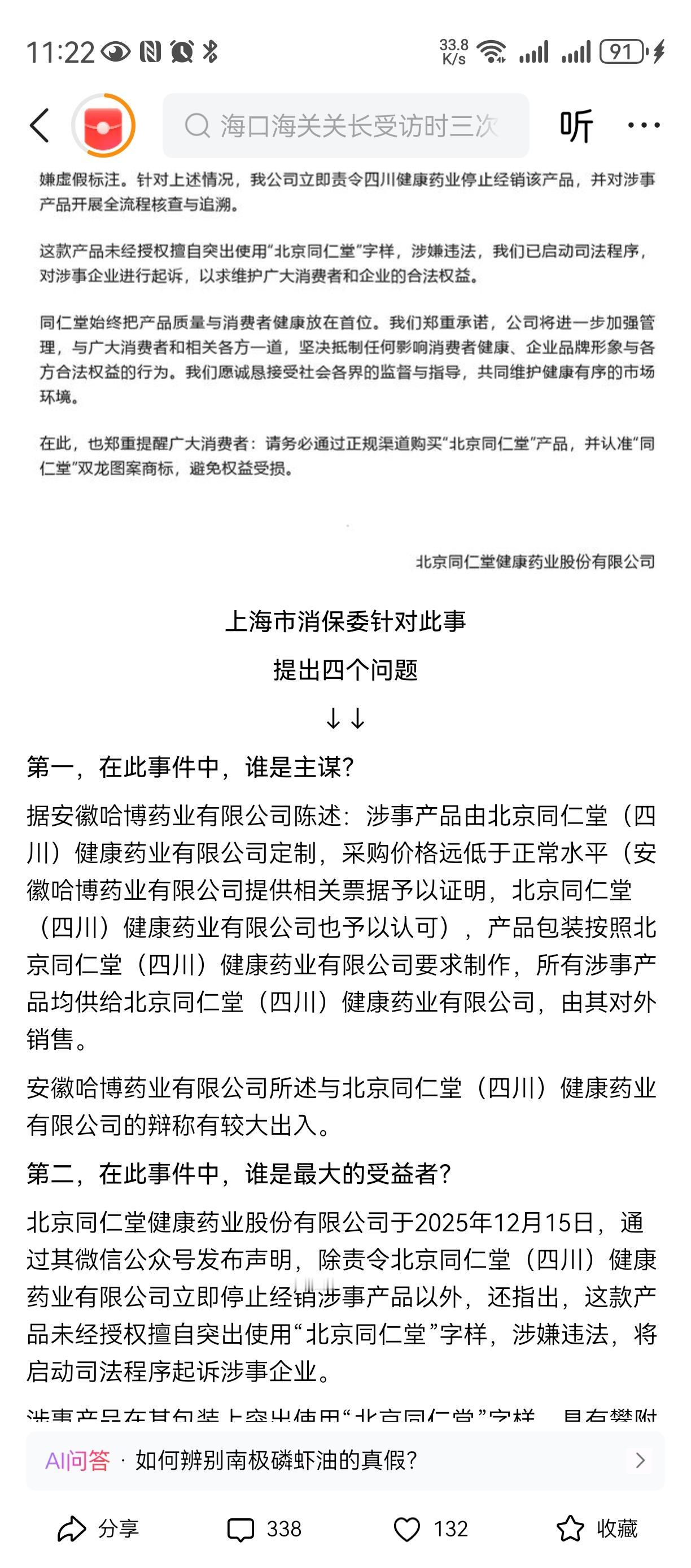 魔都为难帝都?魔都 魔都盛景 [笑哭] 魔都消费者协会, 对准了帝都著名品牌北京同仁堂, 说同仁堂从安徽3元进价, 然后60元卖给您和我额[捂脸] 我这是不是讨骂[捂脸] 这些国企过分了, 魅了良心, 制假造假, 买了的可以虚构宣传申请索赔[灵光一闪][灵光一闪][灵光一闪]