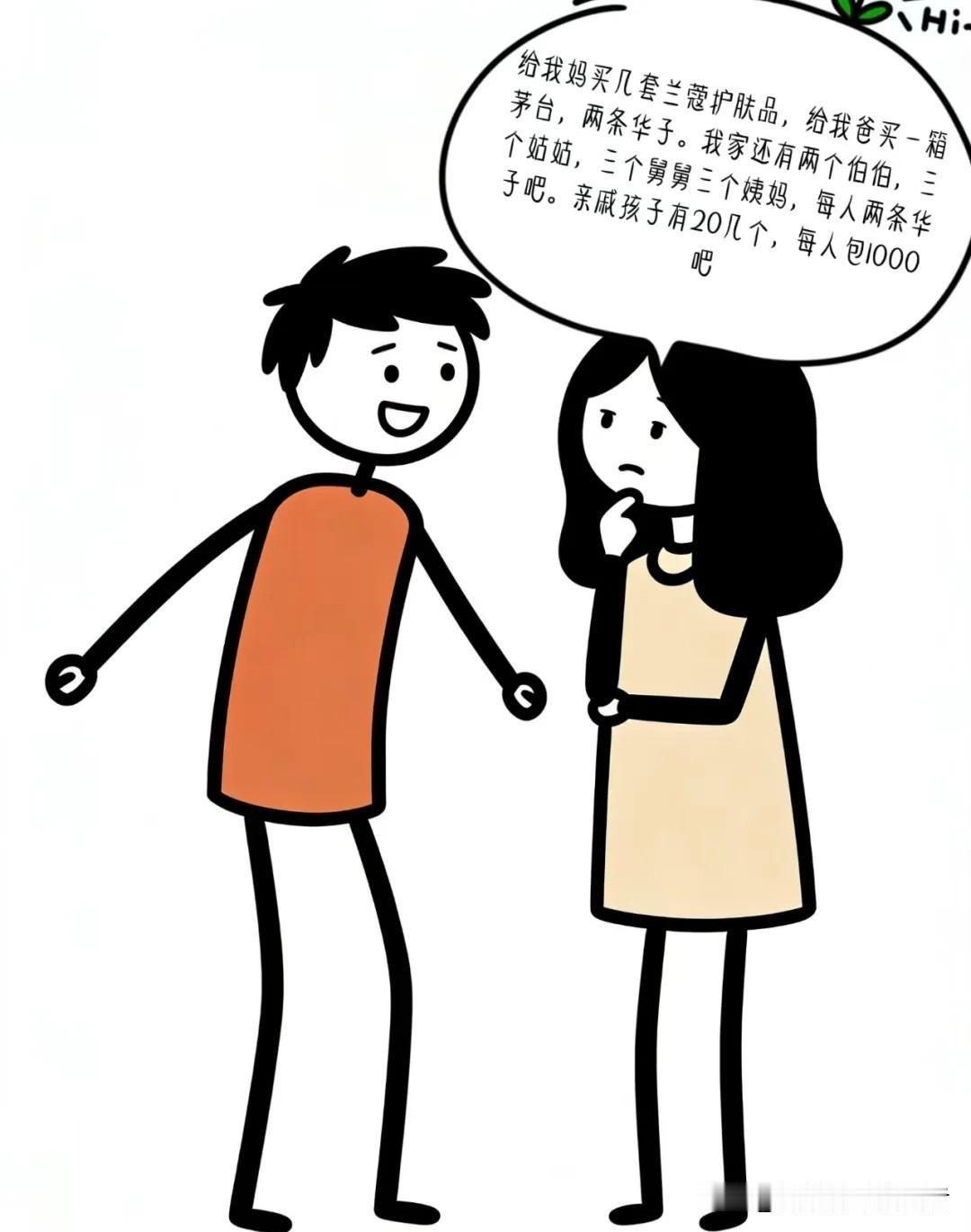 趣味漫画:女生邀请男友到家里吃饭,男:第一次去带什么?女:随便带点…护肤品茅台华子红包都得带。男子目瞪口呆。女:到了我来接你