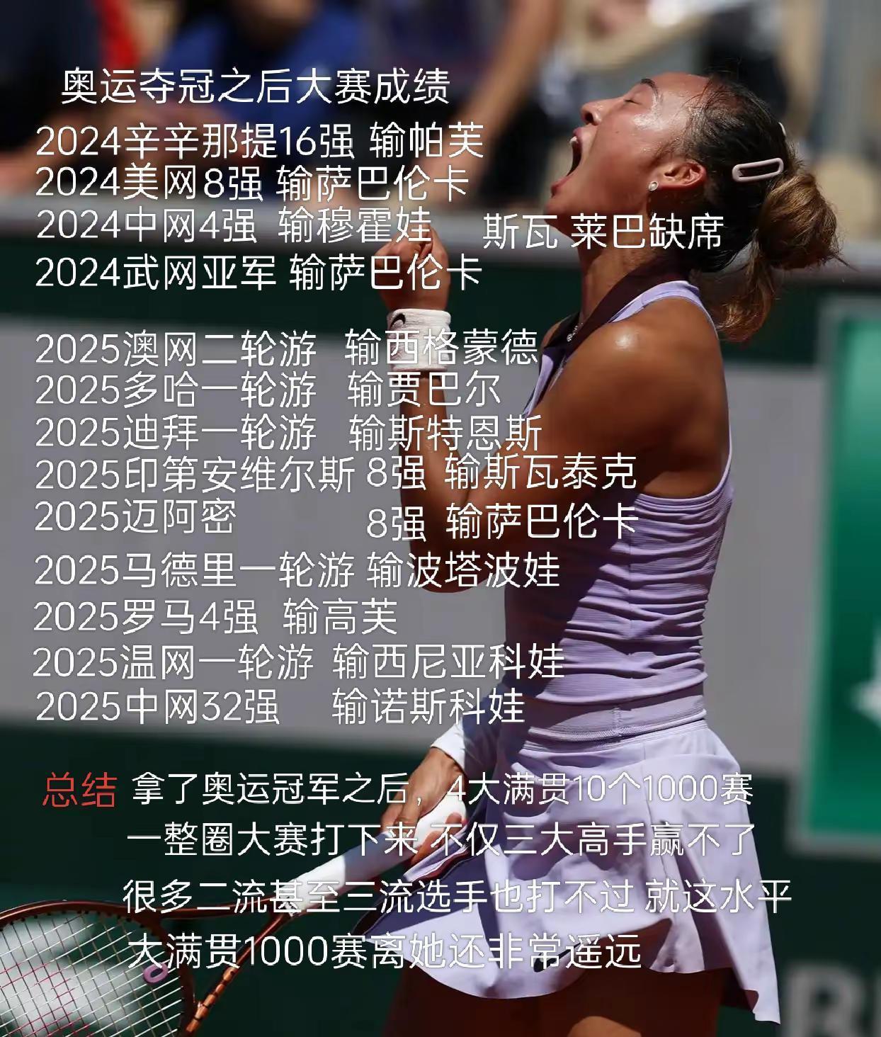 巴黎夺金不到一年,她倒在迈阿密首轮,对手排名50开外。 世界排名滑到30名后,四大满贯颗粒无收。 斯瓦泰克今年已抢下两站1000赛冠军,榜首位置焊死。 萨巴伦卡重炮轰炸,高芙年轻冲刺,网坛三巨头锁死天花板。 大坂直美挥拍回归,哈勒普底线复出,每一个名字都撕咬积分。 资格赛选手频频爆冷,赛场没有安全区。 你握紧金牌,对手已刷新版本。 职业网球用淘汰说话,进化或出局。