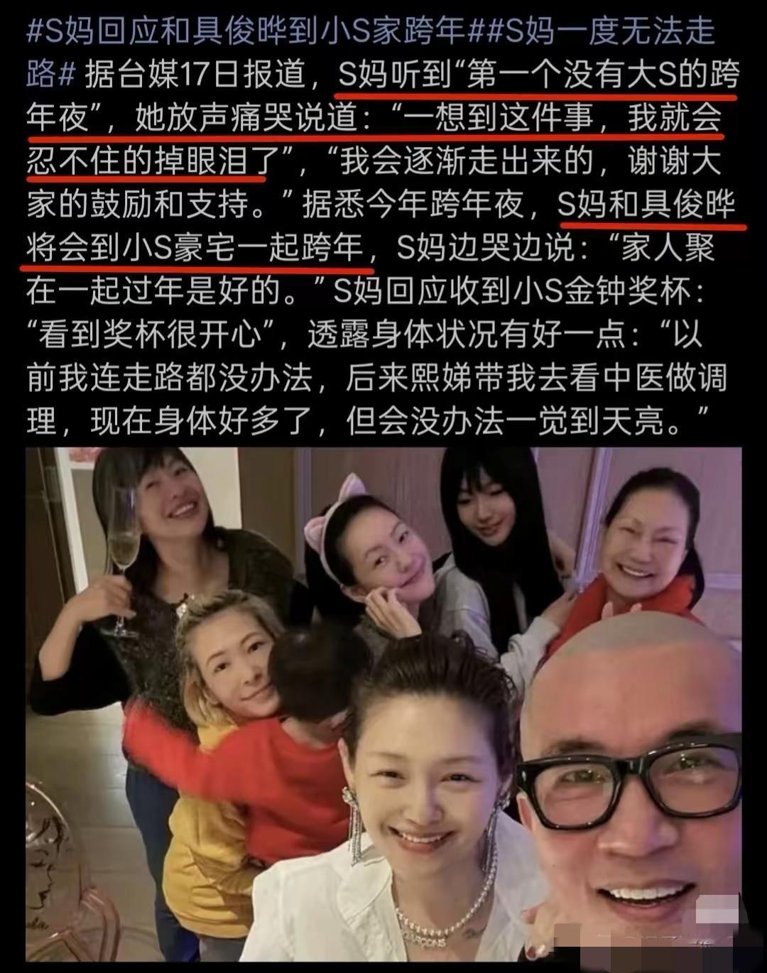 S妈现在仍旧没办法一觉到天亮,不过因为小S带她去看了中医,身体状况好多了。这一家人,终究是放下了,决定跨年夜和具欧巴一起到小S家的豪宅一起跨年。 小S二女儿Lily,也发出一则小视频,用全英文介绍自己要送给姐姐和妹妹的圣诞礼物,都是女孩子们喜欢的零钱包、毛绒玩具等等,看上去都是又可爱又灵动。而且她的英语听上去确实不错,怪不得自己都说英语是她的“母语”呢。 只不过,这一波所有人仍旧没提起玥儿和菻菻。自从大S离开后,这两个名字仿若也被S家屏蔽了,这一家从老到少,有人怀念大S、悲伤难以自已,有人盛赞具俊晔说他深情无比,也有人嘲讽汪小菲蹭流量没品…… 就是没有人真的挂念大S最爱的、最惦念的两个孩子,也没有人去看看他们过得到底好不好。虽然,孩子的住处和学校,和姥姥家离的并不远…… 突然,就替大S感觉挺不值的~