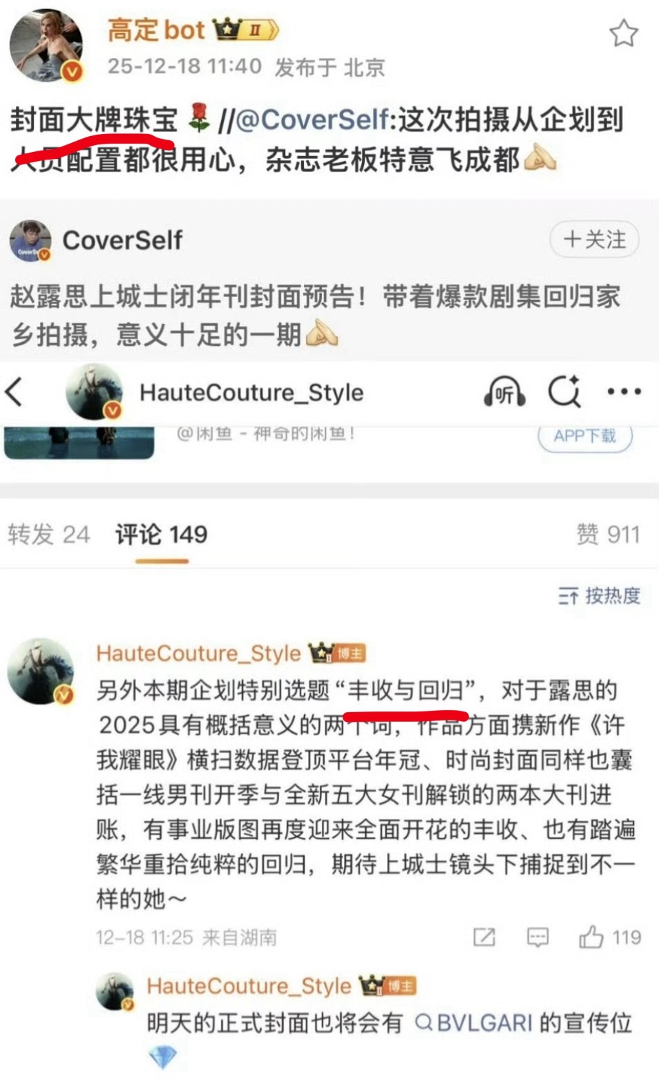 不是给赵露思吹🐮哈,她播剧就是有人看,阿里也是看得到她的价值,所以怎么说呢,人家愿意出来帮她解约,还得是靠自己。许我耀眼的成绩确实厉害,她自己也说26年会努力拍戏的。《丰收和回归》很契合她现在的样子。