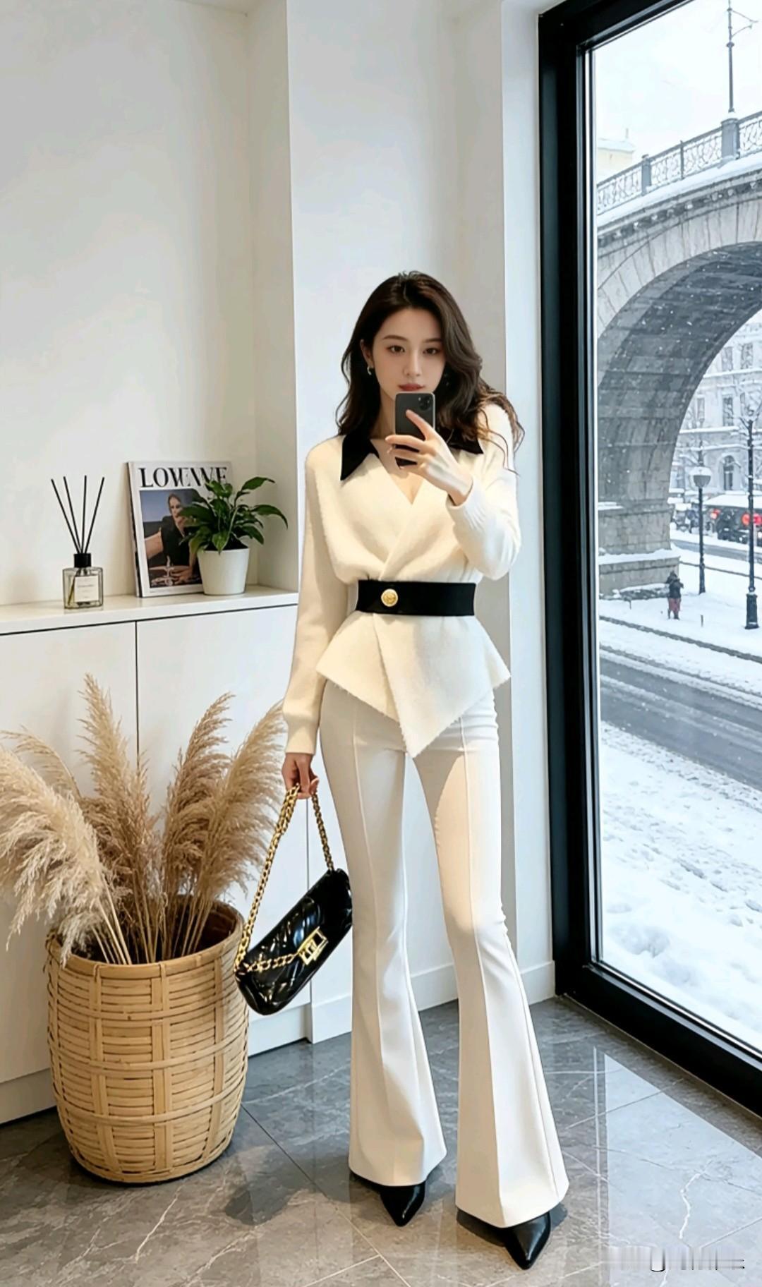雪中白衣人,镜里影自怜。