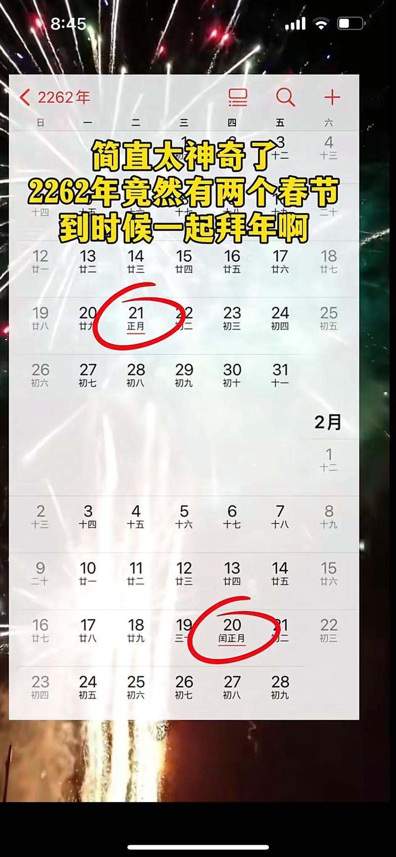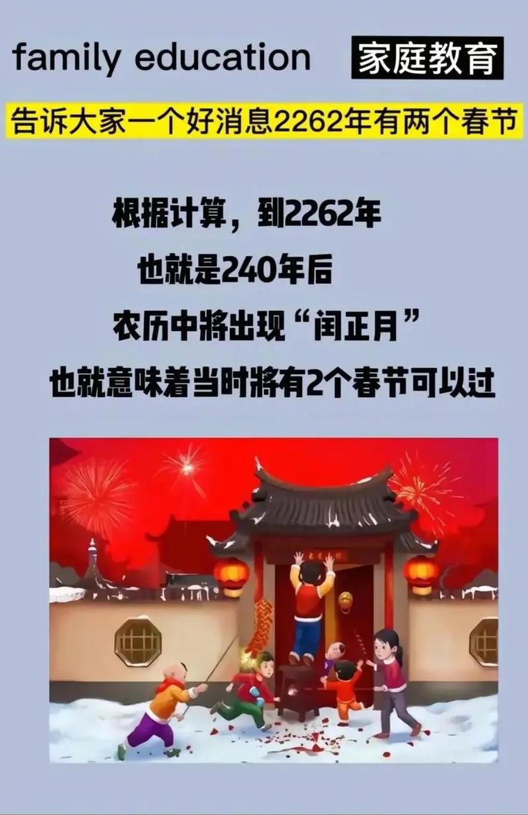 🌏 不是穿越,是科学!2262年将迎来罕见的“闰正月”,意味着我们有机会过上两个春节!消息一出,网友却集体“人间清醒”:有人调侃“这事和咱有关系吗”,有人直呼“能活到那时的请举手”……热闹背后,其实是一个有趣的历法冷知识。 💡 为何会出现“两个春节”?其实是因为农历闰月的设置,为了和阳历季节同步,大约每19年会有7个闰月。而闰正月极其少见,下一次就要等到2262年。虽然我们大概率无缘见证,但想想也挺浪漫——时间给了未来人双份的年味。 😄 不过话说回来,与其盼着二百多年后的闰年,不如好好过好眼前的每一个春节。团圆、饺子、红包,才是咱们触手可及的温暖。你对这个天文冷知识怎么看?来评论区聊聊!👇 闰正月 两个春节 历法冷知识