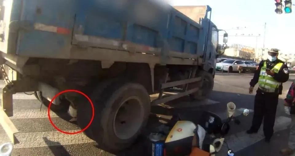 上海闵行区漕宝路虹莘路路口早高峰发生的一幕太惊险了!一辆右转货车和直行电动自行车碰撞,骑车的杨女士被卷入车底,卡车轮胎直接从她头部碾过。 不过这杨女士命大,她正确佩戴了安全头盔,而且货车还是空车,经送医检查竟无生命危险。民警到场时,她意识清醒,头盔却已碎裂。货车司机虽遵守“右转必停”,但因视野盲区没看到电动车。司机得担责,毕竟疏于观察盲区、转弯没让直行。这事儿也给咱提了个醒,骑电动车一定得戴头盔,关键时刻真能保命!