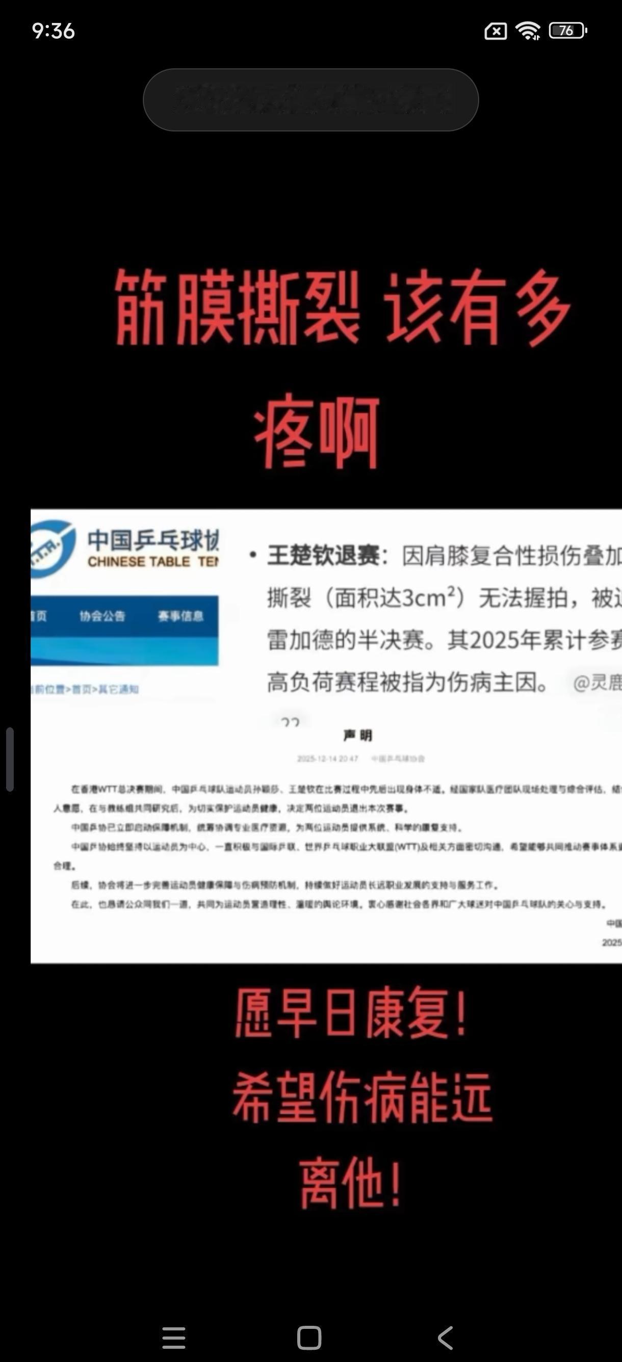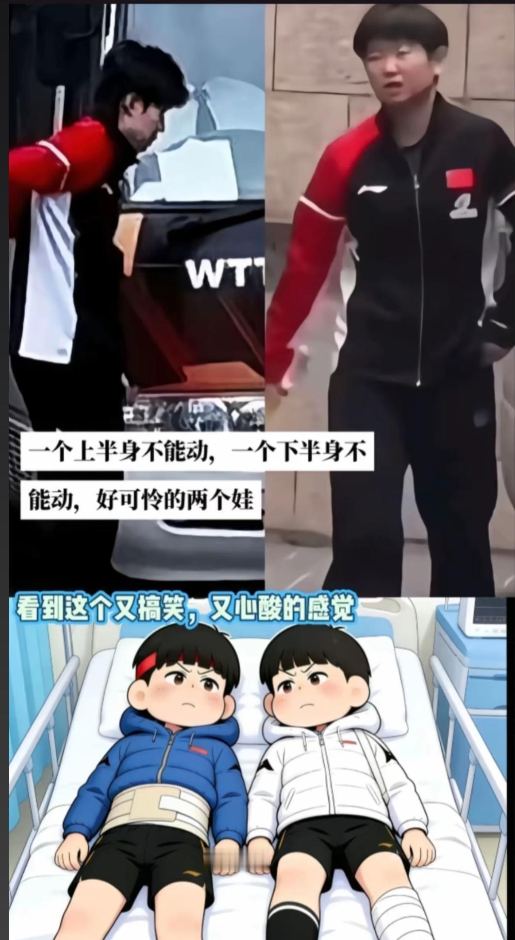他手腕骨裂的刺痛传遍全身,却在对方杀球瞬间跨步挡在她身前——自己的肩膀早就抬不起来了。 你看见的是混双夺冠,没看见他每拍反手都在咬牙。 莎莎右腿旧伤复发那秒,头哥用腰伤更重的身子强行侧移,把救球角度全揽给自己。 赛后采访他揉着绷带说“她腿不能再用劲”,只字不提自己手部注射的封闭针。 这对搭档三年,训练馆监控记录显示:王楚钦给孙颖莎当人肉防撞垫 47 次,孙颖莎偷偷给王楚钦冰敷手腕 89 回。 国际乒联数据里,他们救险球成功率比平均高 23%,因为总有一人提前补位。 领奖台上闪光灯咔嚓作响,他们握拍的茧子叠在一起。 体育精神从来不是奖牌堆砌,而是你疼时我当你的铠甲,我累时你作我的支点。