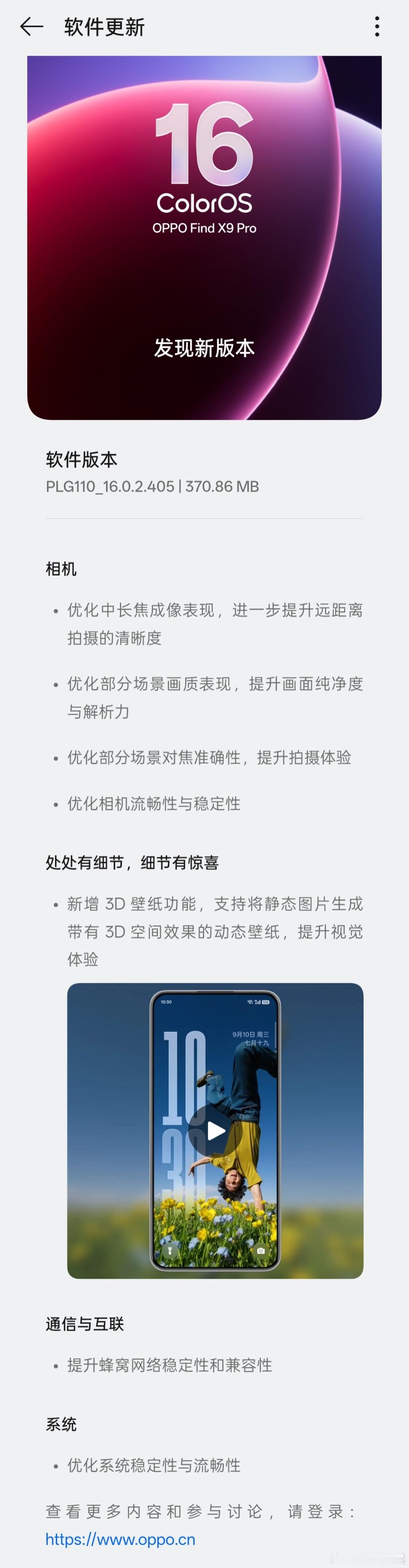 Find X9 Pro的405更新收到了吗?新增了3D壁纸功能,中长焦影像表现也是进一步优化