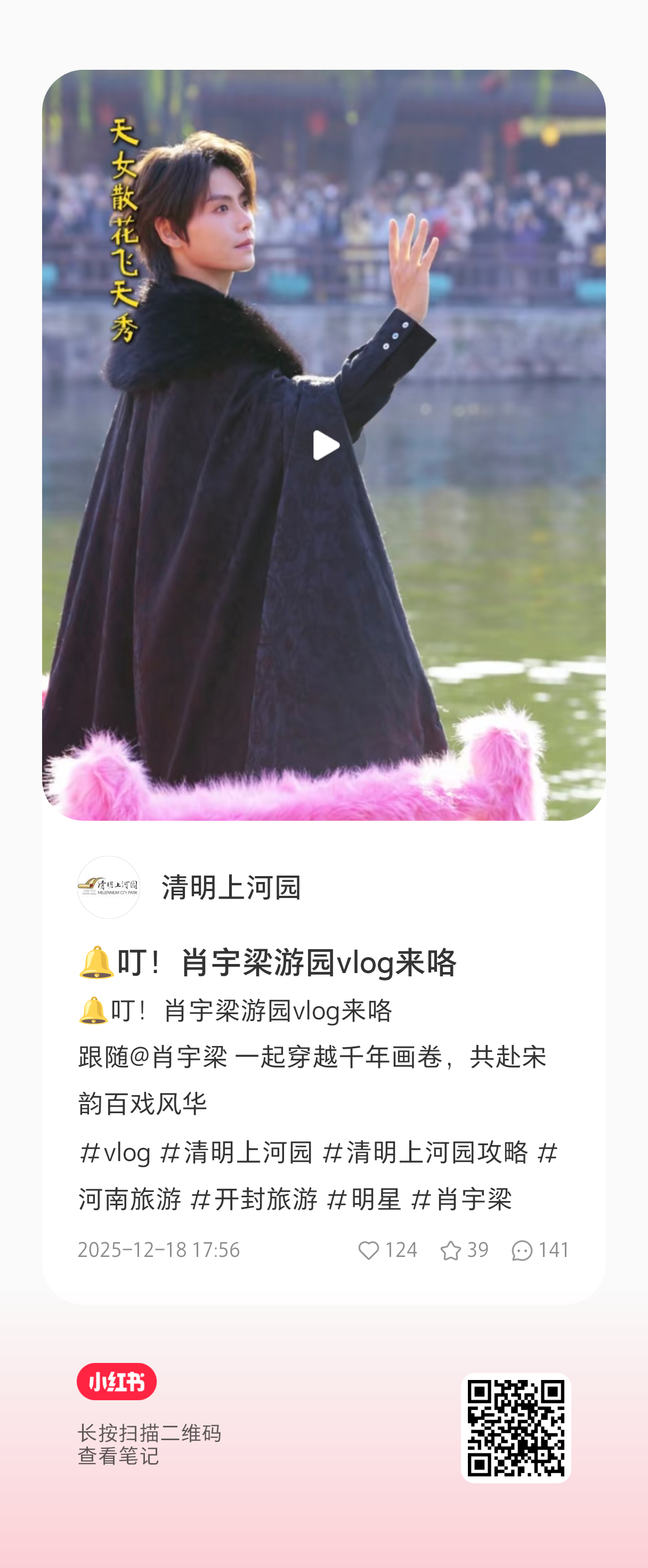 肖宇梁 清明上河园【🍠和🫘】发了新的vlog!速去
