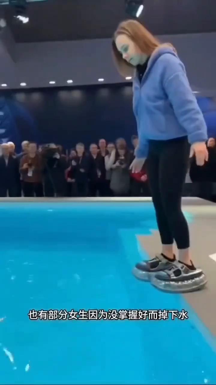 能水上行走的鞋子。 你敢相信吗?一双鞋就能让你在水面上自由行走。视频中的男子穿上这款最新研发的鞋子后,真的做到了在水面上行走,而且丝毫不会掉下去。他的动作丝滑平稳,没有任何不适感,更没有摇摇晃晃的情况。更令人惊讶的是,就连女生也能轻松快速适应,只需练习几分钟就能达到这样的熟练度。男子熟悉之后,甚至直接在水面上跑了起来。 当然,也有部分女生因为没掌握好而掉下水,简直实现了小时候轻功水上漂的梦想。没想到这双看似平常的鞋子竟能承受如此大的重量,真是太神奇了。要是能在大海上行走,那是不是连船都省了?不得不说,这个发明真的太先进了。