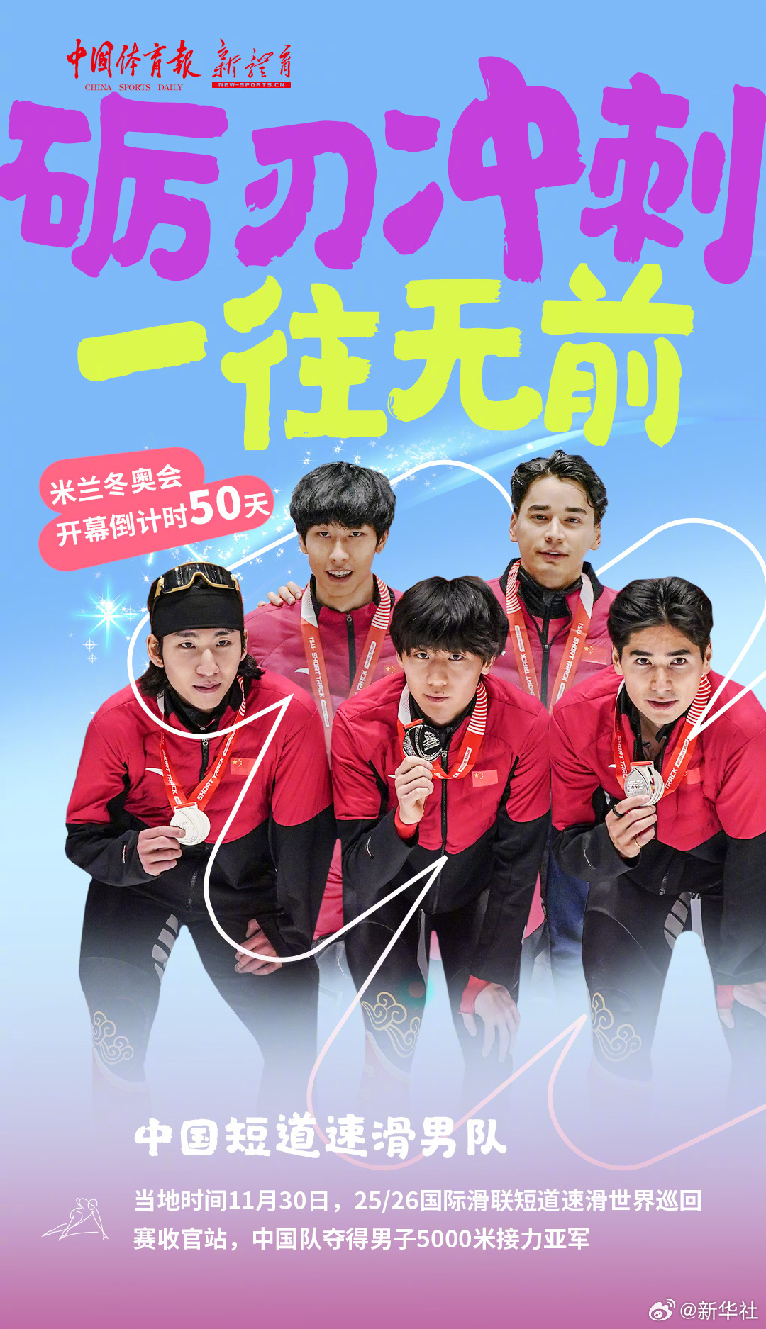 【#一人一句为中国冬奥健儿加油#】冰面上刀锋清冽的嘶鸣,雪道间身影决绝的腾跃,#50天后就是米兰冬奥会了#,等中国冰雪健儿正厉兵秣马,蓄势待发。冰刃破风、御雪而歌,向光而行、一往无前,一起为冰雪健儿加油!(中国奥林匹克委员会)