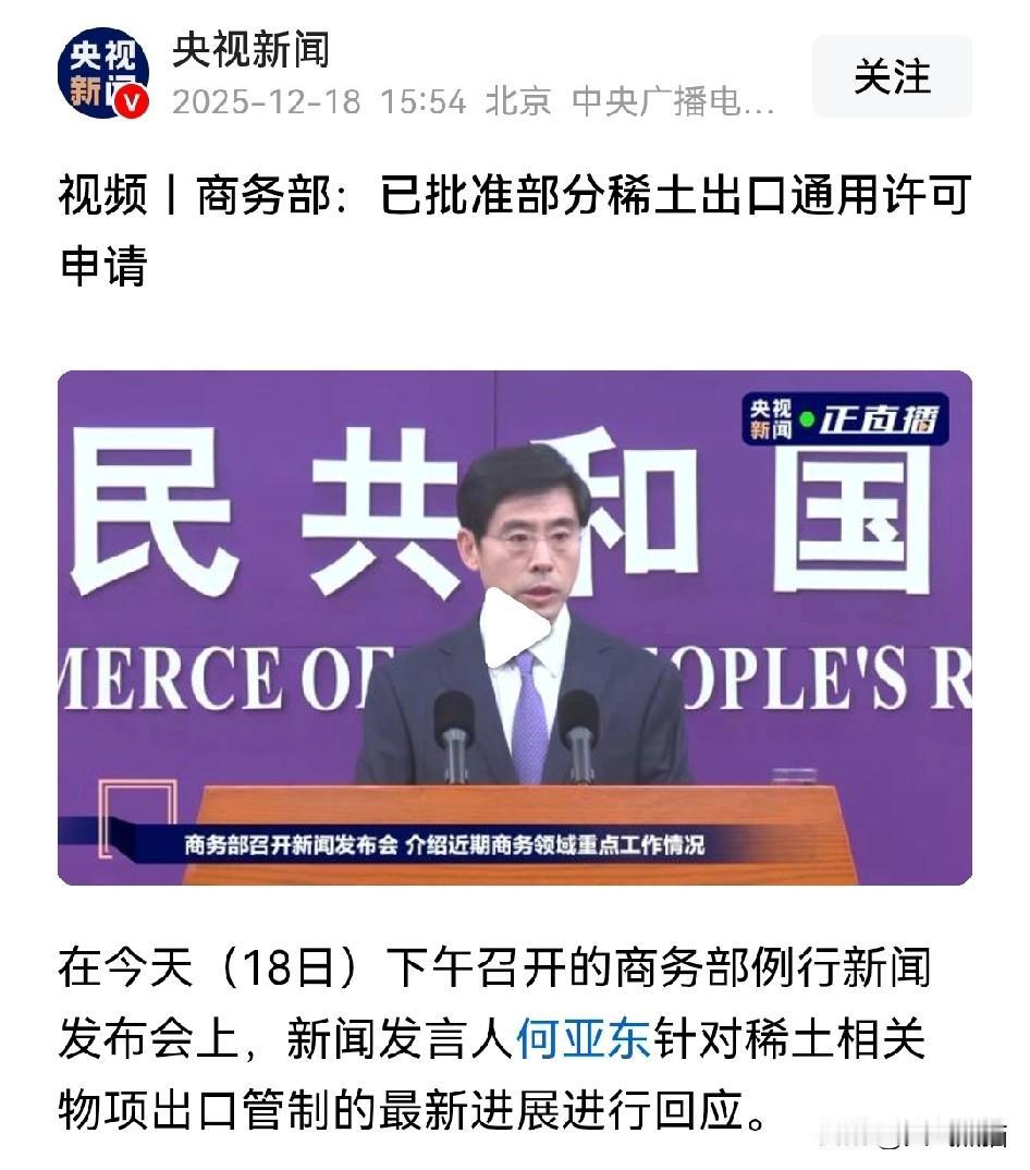 稀土出口管制有了最新的进展! 12月18日,有关方面称,已经批准了部分出口商的通用许可申请,这也就是说,对于一些符合条件的国外厂商,将会有序的接收来自中国的稀土等相关物项。 有网友认为,这充分表明了政策的灵活性,不能搞一刀切,既保持与外界的经济贸易联系,又精准的打击那些不法的用途,毕竟咱们的企业也需要贸易,也需要吃饭。