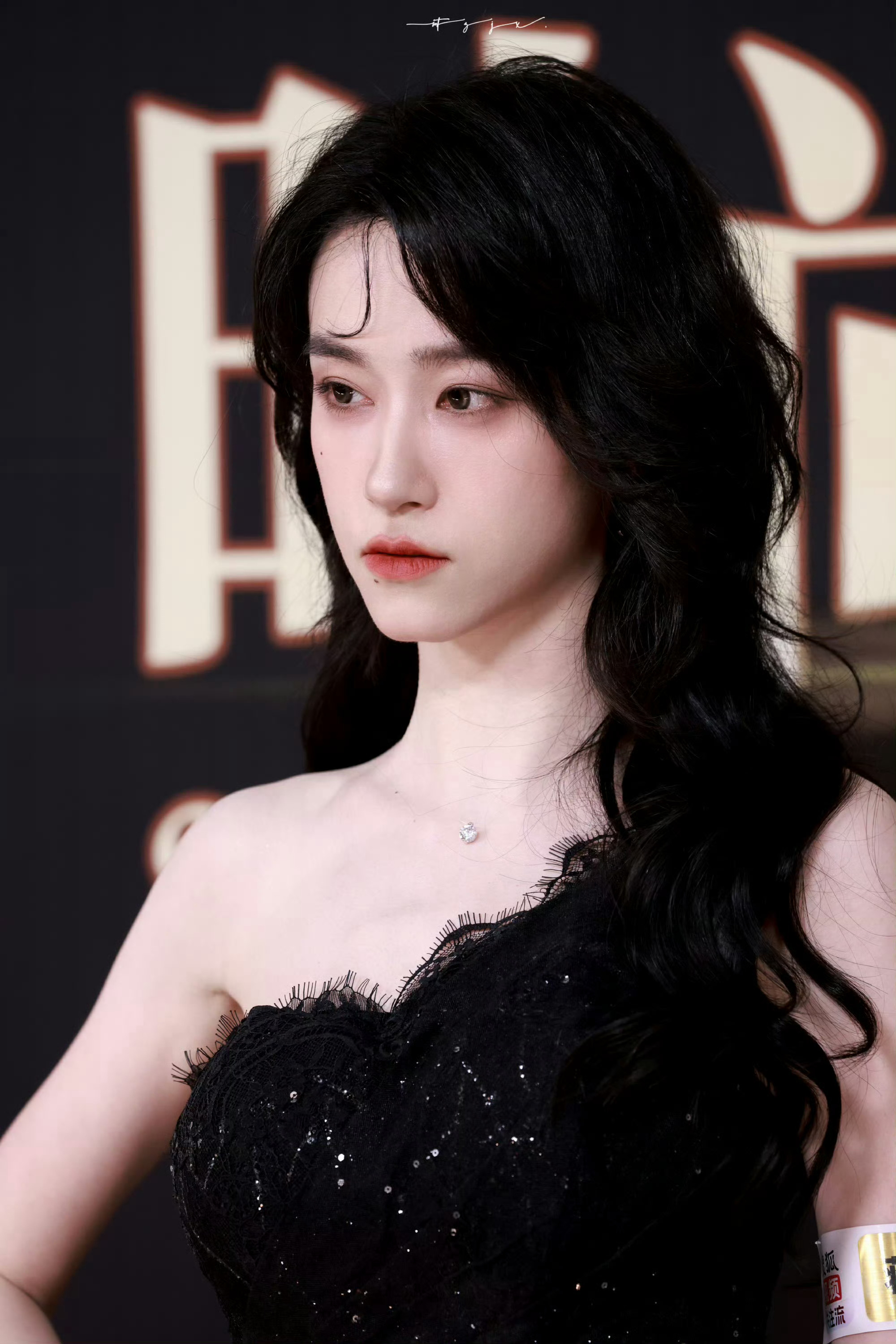 蒋芸姐感红毯之上,黑裙曳地,冷艳妆容配上慵懒卷发,抬眸转身间尽显成熟魅力。姐感