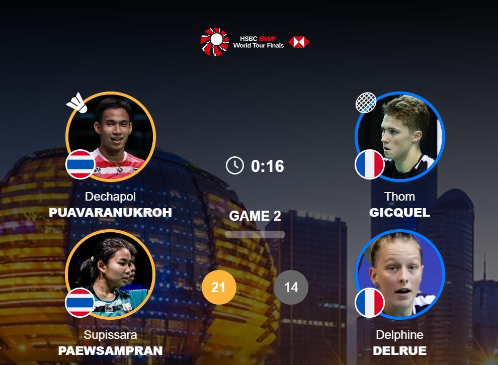 2025年世界羽联年终总决赛 混双 A组 德差波 / 苏皮萨拉 21-14 吉凯尔 / 德尔吕热点现场