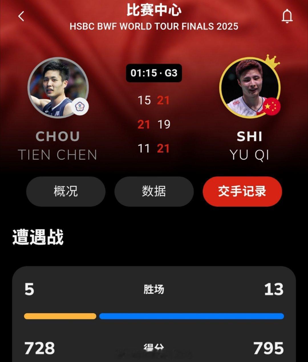 2025年世界羽联年终总决赛 男单 B组 周天成 11-21 21-1915-21 石宇奇热点现场
