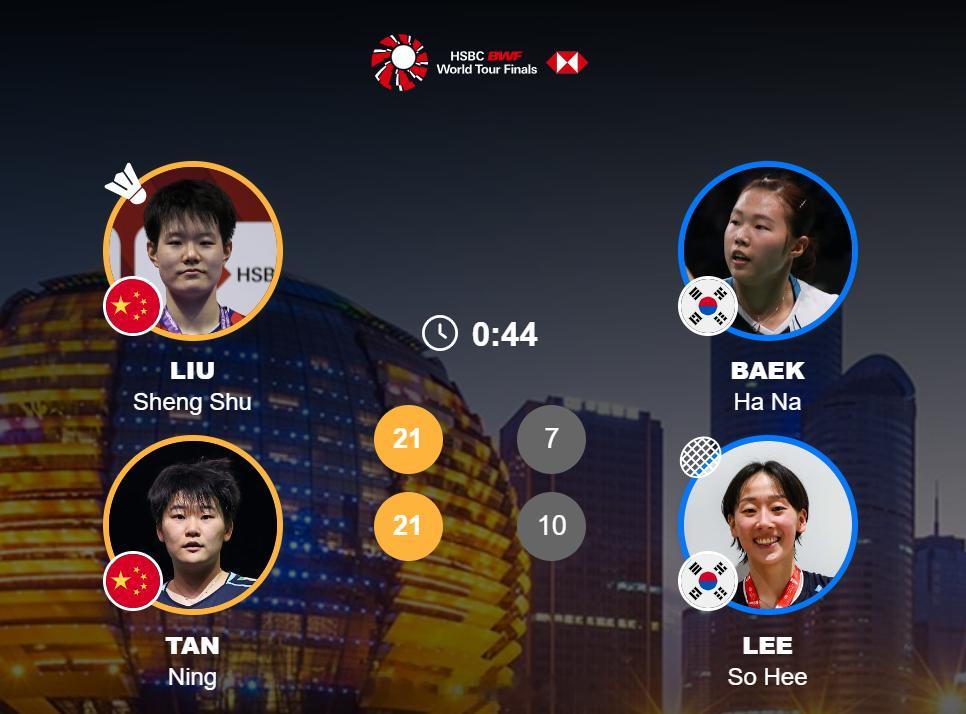 2025年世界羽联年终总决赛 女双 B组 刘圣书 / 谭宁 21-7 21-10 白荷娜 / 李昭希热点现场
