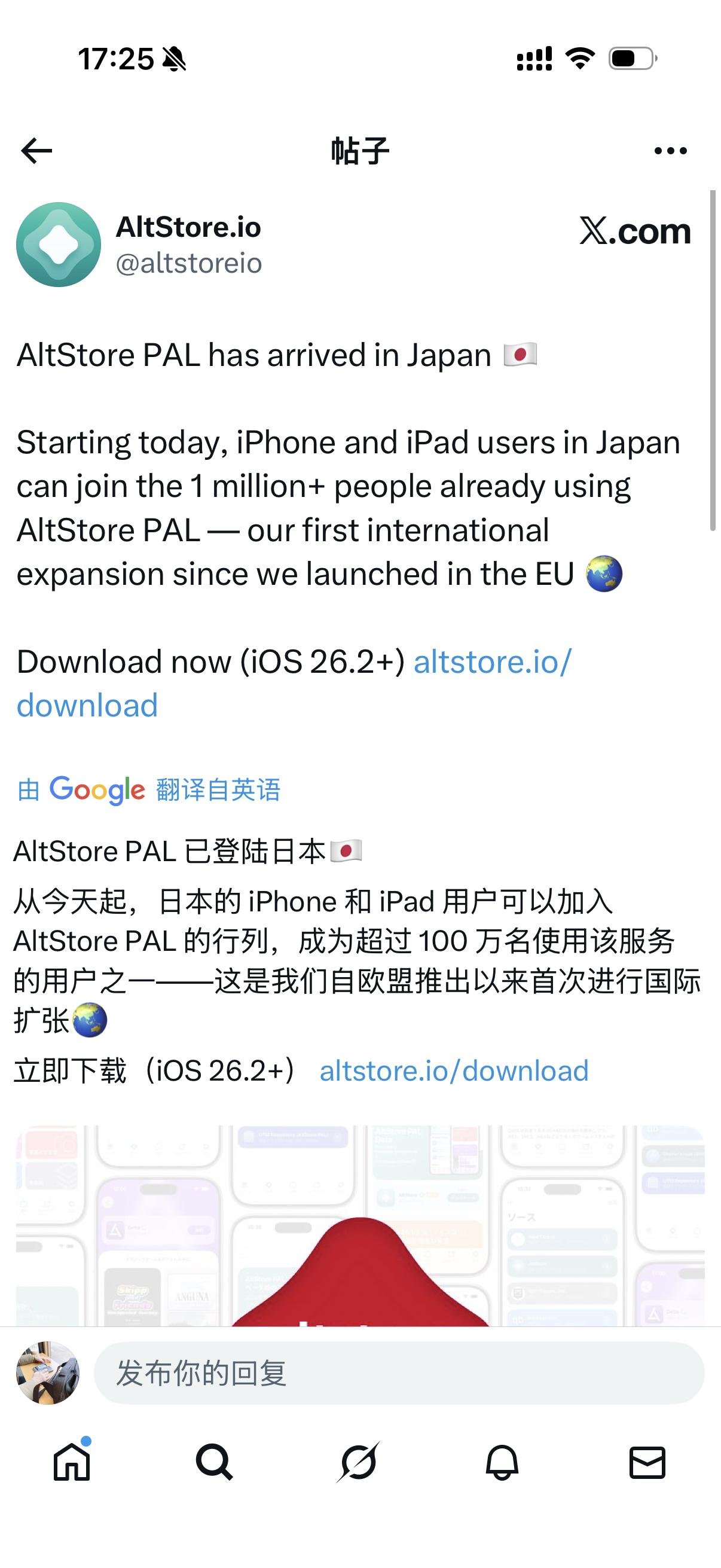 恭喜日本用户!继欧盟之后日本地区的iPhone也能用上非App Store的第三方应用市场了。不过得满足三个条件:一是设备位置在日本或欧盟,二是苹果ID归属这两个地区,同时系统版本还要升级到iOS 26.2。