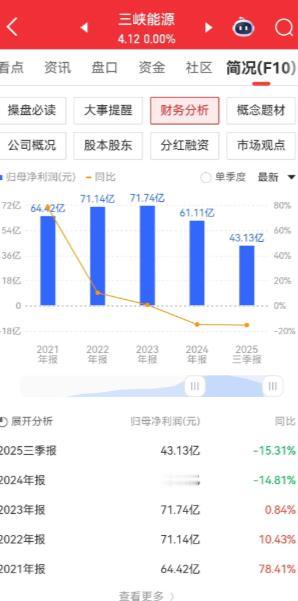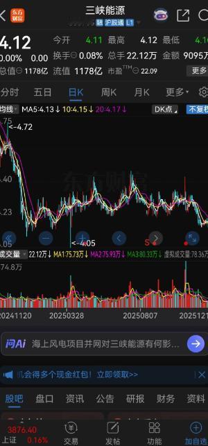 买了三峡能源的股民,眼睛能哭瞎! 去年大盘2600多点时,三峡能源的股价最低是4.01元,昨天三峡能源盘中最低跌到了4.08元,这个价格相当于大盘2700点的位置,至少落后大盘1000多点。 说起来也挺讽刺的,去年大盘还在2600多点徘徊的时候,三峡能源最低跌到过4.01元。 如今大盘都冲上4000点创了近十年新高,这只票昨天盘中最低居然跌到了4.08元,相当于还停留在大盘2700点的水平,硬生生落后了大盘1000多个点位。 可能没买过的人没法体会这种心情,这轮行情从2024年9月就启动了,上证指数从2800点附近一路高歌猛进,今年10月不仅突破4000点,还一度触及4010.73点的高位。 整个市场一片火热,日均成交额经常突破2万亿元,近2400只股票上涨、逾70只股票涨停都是常有的事。 可三峡能源偏偏逆势而行,从高点下来已经跌了53%,腰斩还多,当初抱着价值投资心态入场的股民,现在怕是欲哭无泪。 为啥大盘涨它不涨,反而一个劲下跌? 其实从三峡能源的业绩里能找到答案,根据新浪财经报道,公司2025年前三季度利润总额较上年同期下降了21.49%,董秘也直言,主要是三个原因拖了后腿:一是发电平均利用小时数同比下降,受电源分布和各地区消纳情况影响;二是市场化交易电量比重上升,综合平均电价降了;三是新投产项目多,折旧和运营成本跟着增加,营业成本同比涨了17%。 说白了,公司赚钱能力不如以前了,股价自然难有起色。 要知道三峡能源2021年上市的时候可是风光无限,九天八个涨停,最高冲到8.51元,被不少人看作是“第二个长江电力”。 可四年过去,股价又跌回了4元左右,成交量也越来越少,成了大家口中的“僵尸股”,哪怕公司控股股东增持,也没能给股价带来一点动力。 作为一个资深股民,专注市场一线观察,也想说说自己的看法。 这轮牛市的核心主线是科技板块,电子、通信这些行业涨得最猛,而三峡能源所在的风电板块本身就不是市场热点。 加上公司自身业绩承压,资金自然不会往这里凑。对于持有这只票的股民来说,现在确实很煎熬,割肉舍不得,拿着又不涨。 不过也不用过度悲观,目前公司还有不少在建和储备项目,像内蒙古、新疆的新能源基地项目,未来如果能顺利投产并改善消纳问题,或许能给业绩带来转机。 只是这个过程可能比较漫长,需要足够的耐心。 以上都是个人观点,对此您有什么不同的看法,可以在评论区留言讨论!!!