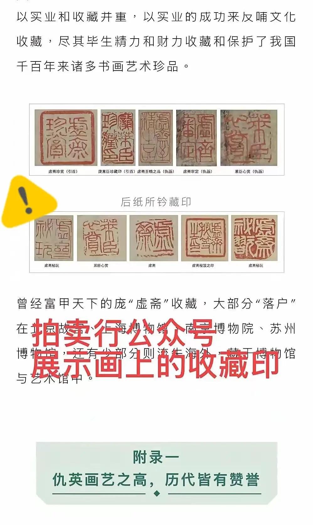 南京博物院庞莱臣流失的五幅画作之一的双马图轴,已经于2014年以230万的价格被拍卖掉了。 感觉全国不是个例,南京博物院这要不是犯贱去羞辱人家后人,根本不会被发现。 博物院自己认定是假,私自处理,若干年后出现在拍卖行被拍卖掉几乎没人能发现。 ​ 回顾一下,1959是个很特殊的年代,马上就是大吃饱,再几年就是四清,后续十年也不多说了。 捐给南京博物院已经是当时中国大陆藏家最好的选择,甚至可能没有之一。 南京博物院这事做的很抽象。但我不得不承认,居然能找到1961-1964年的鉴定为假的报告,这已经是那个年代消失的一众文物中难得的体面了。 人家收藏章都印着,赖不掉的! 另外,捐赠鉴定假的话为什么不还给人家?如果归还那么少了很大的贪污口子了…… ​
