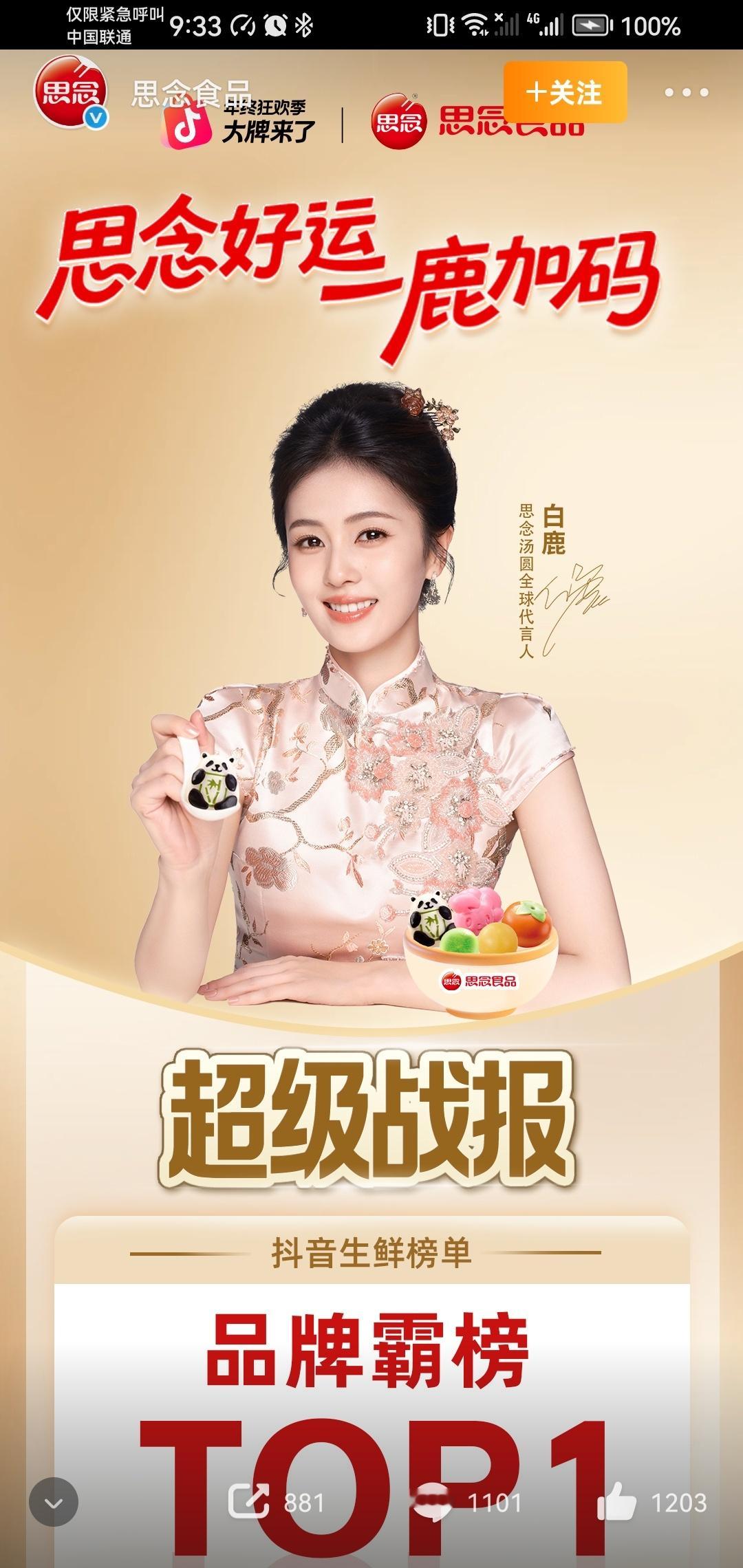 一打开微博,发现开屏是白鹿,思念汤圆竟然把直播战报放微博开屏上了。