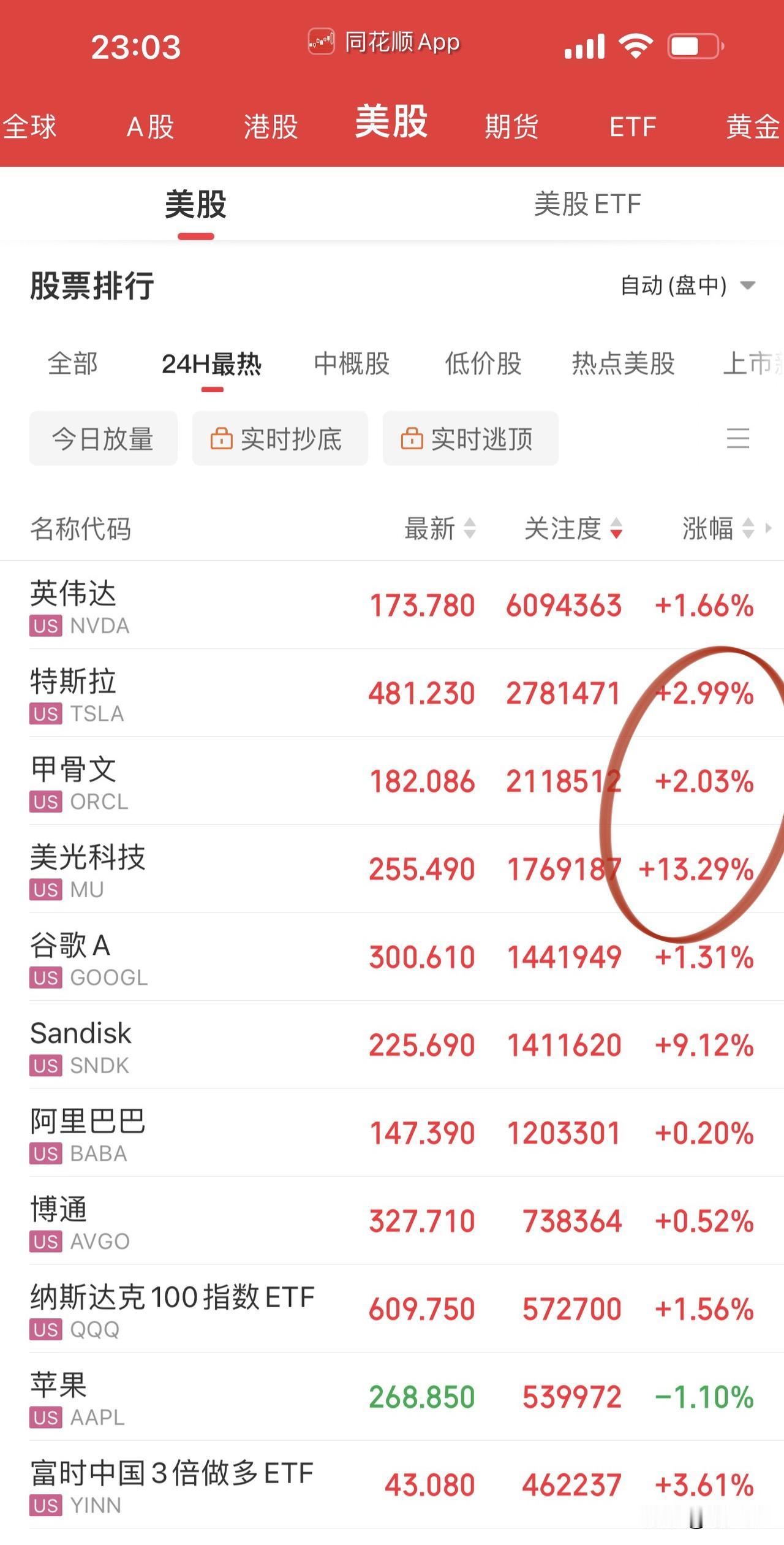 美光科技涨势霸道, 一根超级阳线收复一周阴跌失地! “美股要跌A股要涨。”— 老股民这句话听了快10年了, 谁还敢当他们面哔哔怕是要挨大嘴巴子。 A股白天的存储全靠美光科技带节奏, 好在国产高端独立行走的兆易创新算争气。 说到这里不得不佩服大佬葛卫东的毒辣眼光: 兆易创新定力十足, 挖掘的臻雷科技也是商业航天独角兽, 如今沐曦股份上市更是10亿投资换百亿回报。 另外一个传奇投资大佬就是高毅资产冯柳了, 在西部材料上倾注5年心血赚的回报稳稳当当! 大佬的致富经都是明面, 但普通股民就是不会抄作业, 归根结底还是赚钱的心太急! …