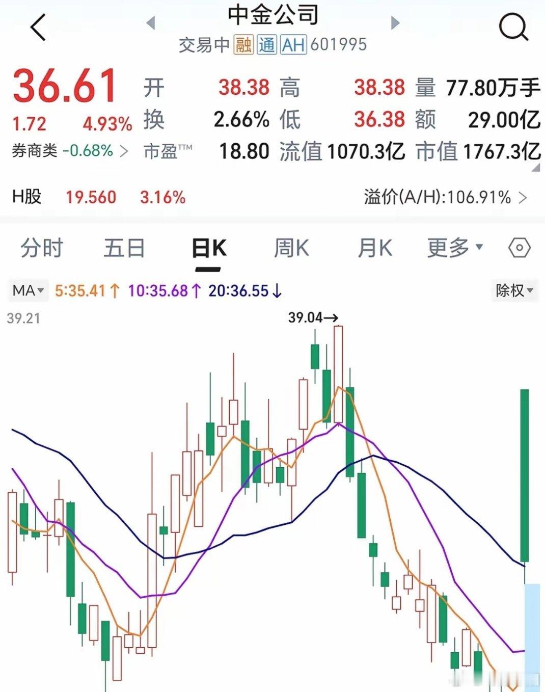 中金公司今日的下跌走势着实令人意外!见过表现平淡的个股,没见过这般超出预期的——券商板块为何始终难以展现强势表现?大盘从3000点逐步上行至4000点,走出了一波温和的上涨行情,而曾被市场寄予厚望、有着“行情风向标”之称的券商板块,全程却缺乏亮眼表现,一直处于震荡整理状态。更让人始料未及的是,今日携利好消息复牌的中金公司:市场此前传出其将与东兴证券、信达证券进行重组的相关动态,按照A股过往惯例,这类重磅利好消息加持下,个股往往会迎来较强的上涨行情。然而实际走势却大相径庭,中金公司以高开姿态开盘后,股价便快速下行,最终收出明显的下跌K线,让不少跟进买入的投资者陷入被动。近来不少投资者对券商板块的表现颇有感触,同为金融板块的保险、银行板块时常会出现阶段性活跃行情,唯独券商板块持续表现低迷,在金融三大板块中明显滞后。这也让人不禁疑惑:中金公司今日的下跌走势,到底是短期的洗盘调整,还是板块本身暂未具备持续走强的动力?