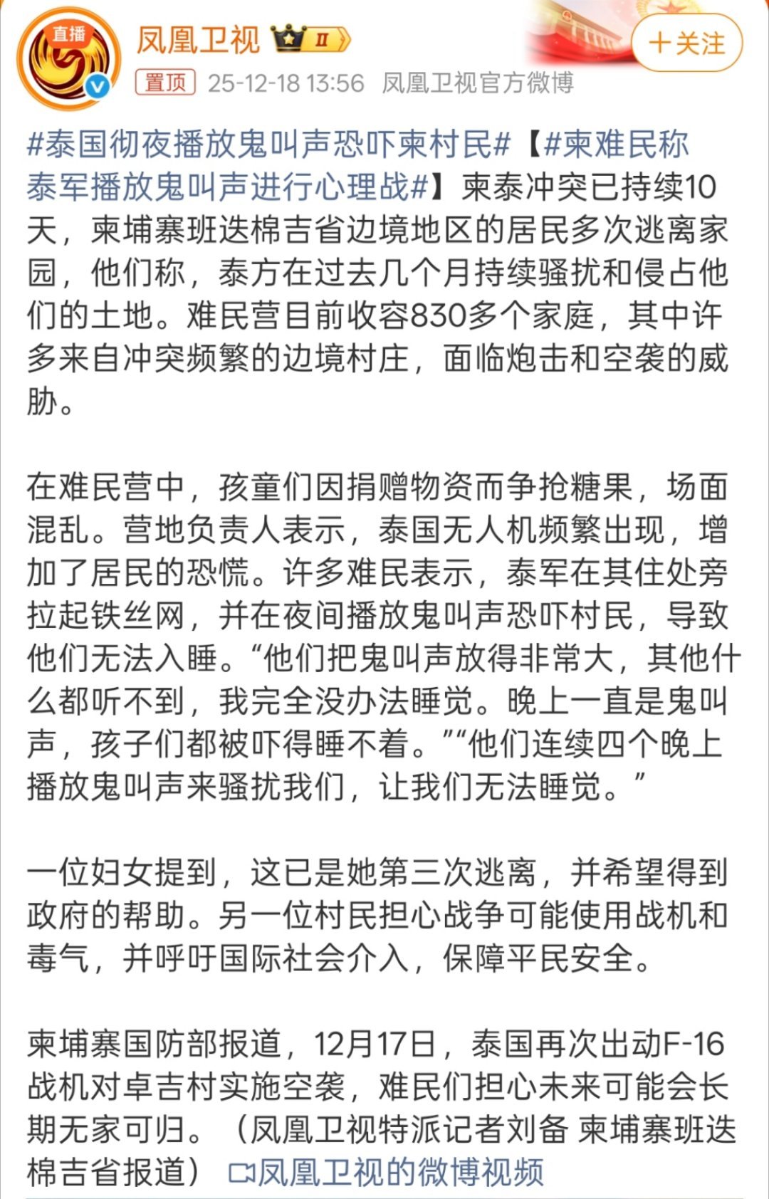 泰国彻夜播放鬼叫声恐吓柬村民我记得泰国本来就是优势吧,这还玩上心理战,不过泰国恐