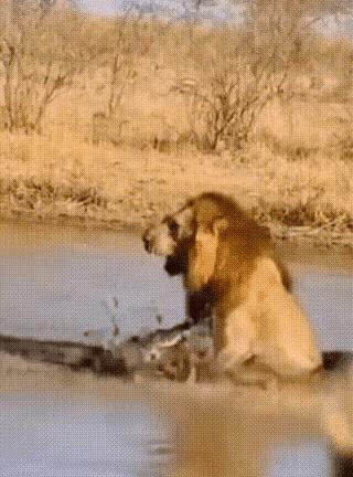 一只雄狮刚把脑袋探到河面,咕噜两口还没喝完,水面啪地炸开,一张大嘴直接咬住它前腿。 狮子被拖进浅水,泥浆四溅,吼声震天,可脚下打滑使不上劲。 鳄鱼翻滚几圈,肚皮撕开,血把水染红,草原之王转眼成了大餐。 研究人员在远处拍完全程,说这类事旱季几乎每月都有,只是镜头完整记录的不多。 我刷完视频后背发凉,再顶级的猎手,一旦离开自己的主场,也可能瞬间翻车。 自然没有剧本,喝水也能丢命。 它提醒我们,谁都别高估自己的安全区。
